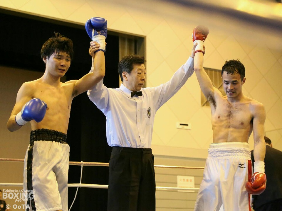 3回に入ると左フックを好打させた山川が手数を増やしてペース争いから一歩リードするも最終回には港も対応してペースを渡さない。