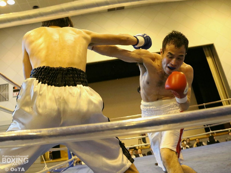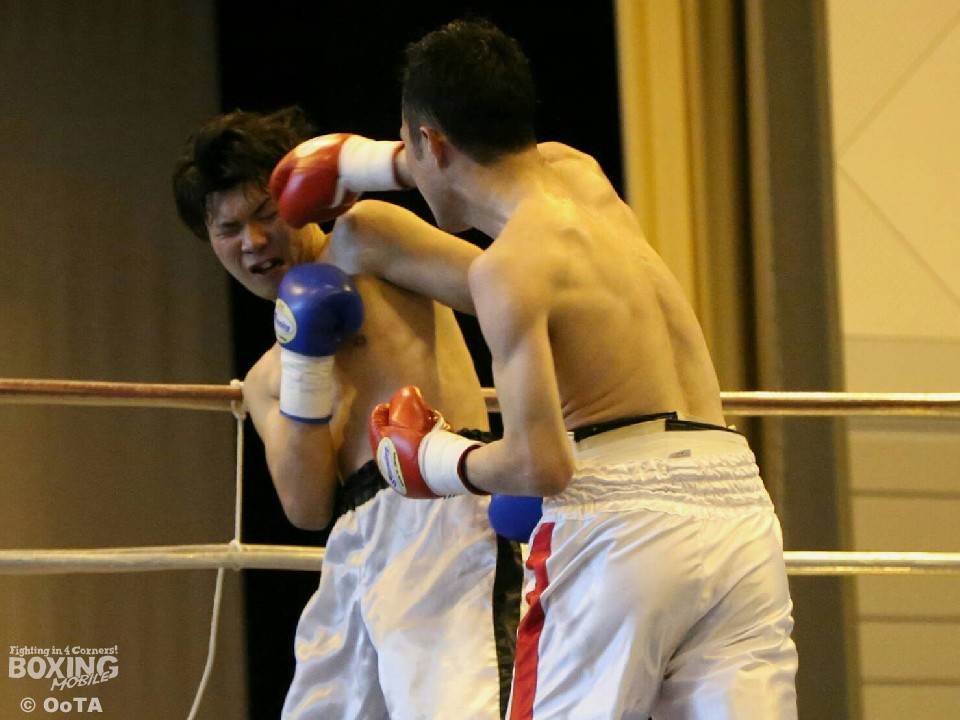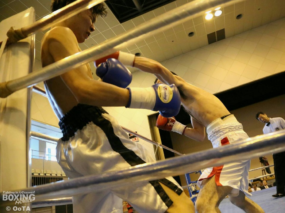 結果:ワンツーでステップインを見せる山川にサウスポーの港は距離を深く取りジャブで対応、互いに決定打を許さない立ち回りで試合を作って行く。