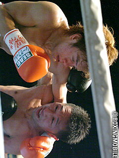 試合:序盤から清水が左ジャブで距離を取り、右ストレートをカウンターでヒット。内藤は得意のトリッキーなボクシングで清水を幻惑したいが清水が冷静に対応し、内藤に自分のボクシングをさせない。オープンスコアリングシステムで行われたこの試合は、1~4R終了時点で清水が38-38・38-38・39-38でリードする展開に。リードを奪われた内藤は、5R以降、距離を詰めに前に出るが、清水が左ジャブで距離を保ち、内藤の動きに付き合う事無く、試合の主導権を完全に掴む。5~8R終了時で77-76・77-75・76-76とジャッジ2者が清水リードを表示。しかし、王者の意地と修羅場を潜って来たキャリアの差が出たのか10R開始直後、清水一瞬の油断を内藤が見落とす事無く、左フックをテンプルにヒットさせ清水からダウンを奪う。立ち上がった清水だがダメージは大きく、内藤の怒涛のラッシュに再びダウンを喫すると立ち上がれず、無念の10カウントを数える。内藤が王者の底力で清水から逆転KOを奪い、タイトル防衛V3に成功した。