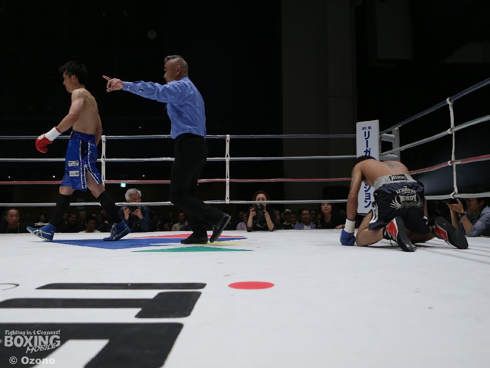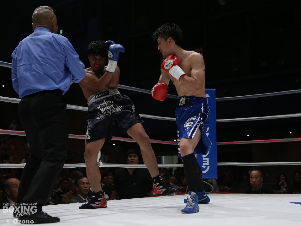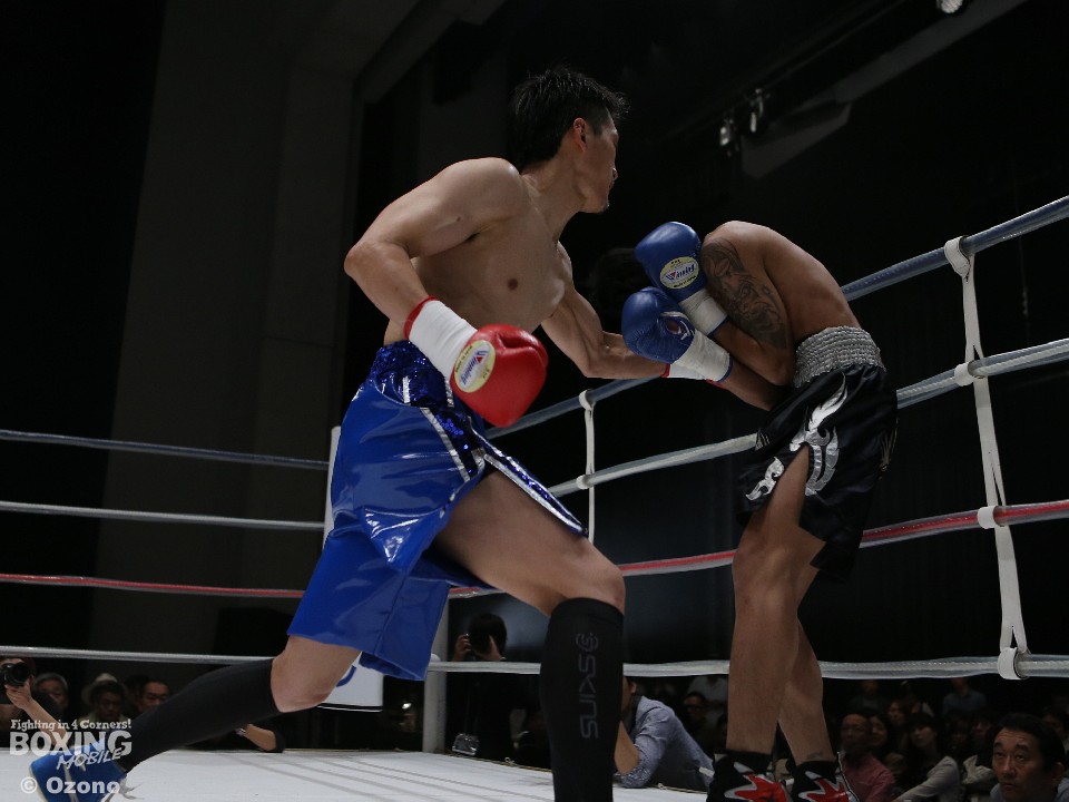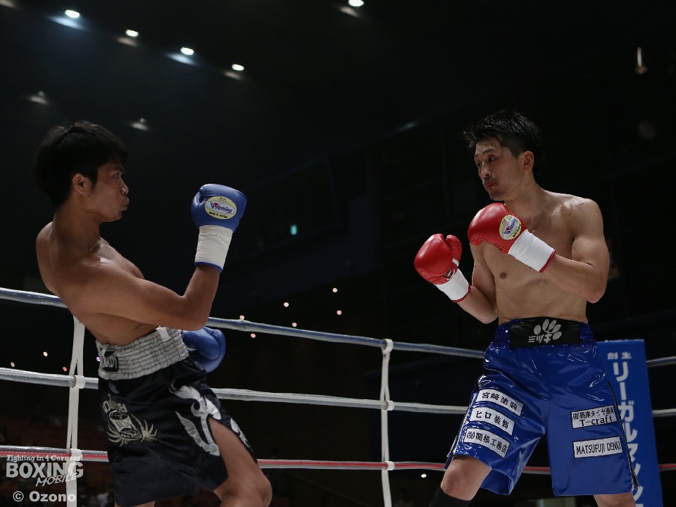 試合:サウスポーの河村はジリジリとプレスをかけるとワンツーを的確にあてる。対して、チベットはロープを背にするとスイッチしながらストレートを振るう。すると1ラウンド終盤、河村が左ストレートで1度目のダウンを奪うと、立ち上がったチベットだが次は河村の左ボディで2度目のダウン。立ち上がったチベットにラッシュを仕掛けた河村がレフェリーストップを呼び込んだ。