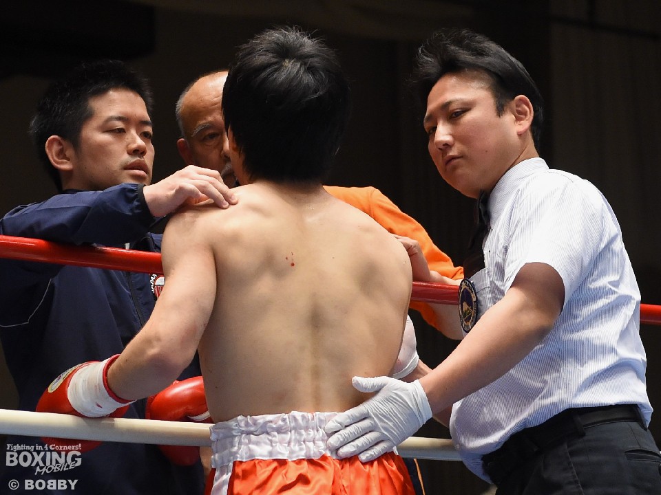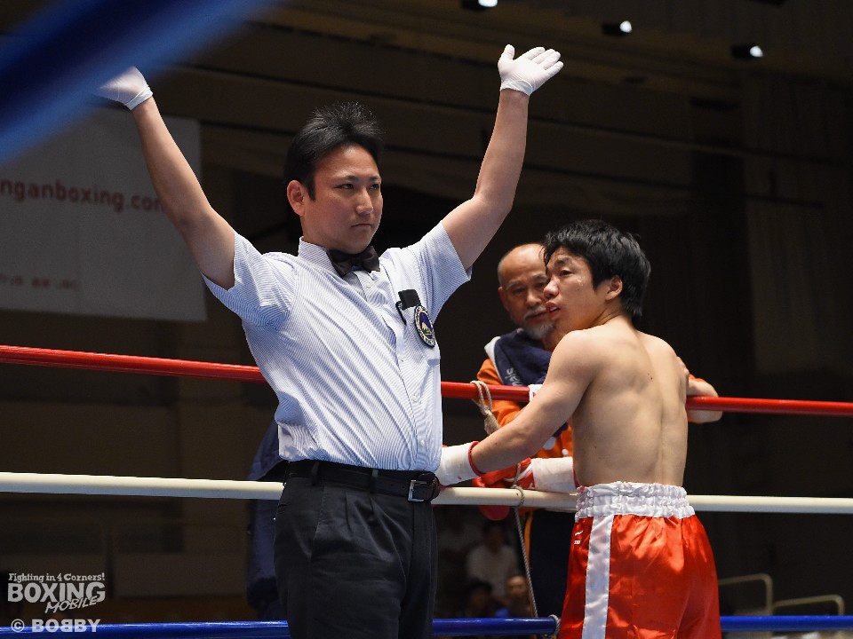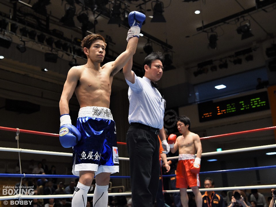 試合:サウスポーの荒川が開始からリズムよく出入りし、左ストレートを上下にヒットし先制。山口も右ストレートを放ちながら距離を詰めるが、左をカウンターで浴びると勢いが衰え、荒川に連打を許してしまった。快調なスタートをきった荒川は、2回も勢いよく飛び出したが、直後にレフェリーが一旦試合を止め、山口にドクターチェックの時間を与えた。山口は鼻骨骨折の疑いがあり、試合はここでストップ。ヒッティングの負傷と判断され、荒川が2回TKO勝ちを飾った。
