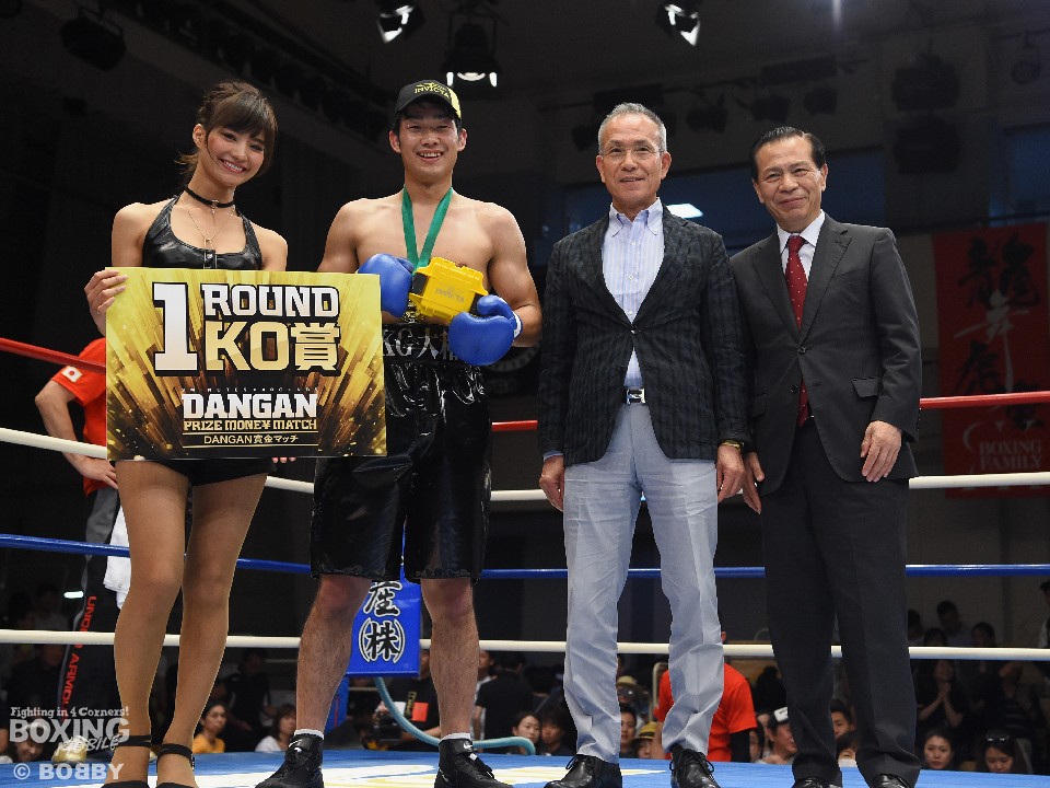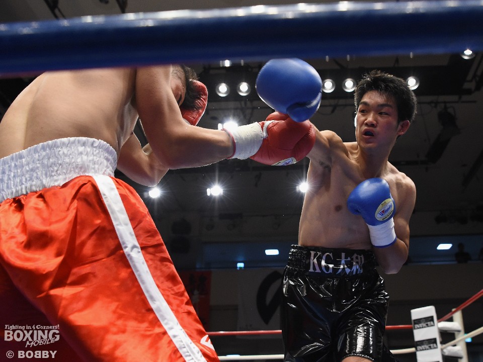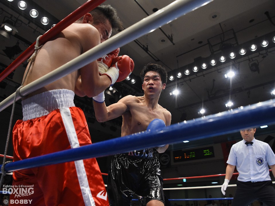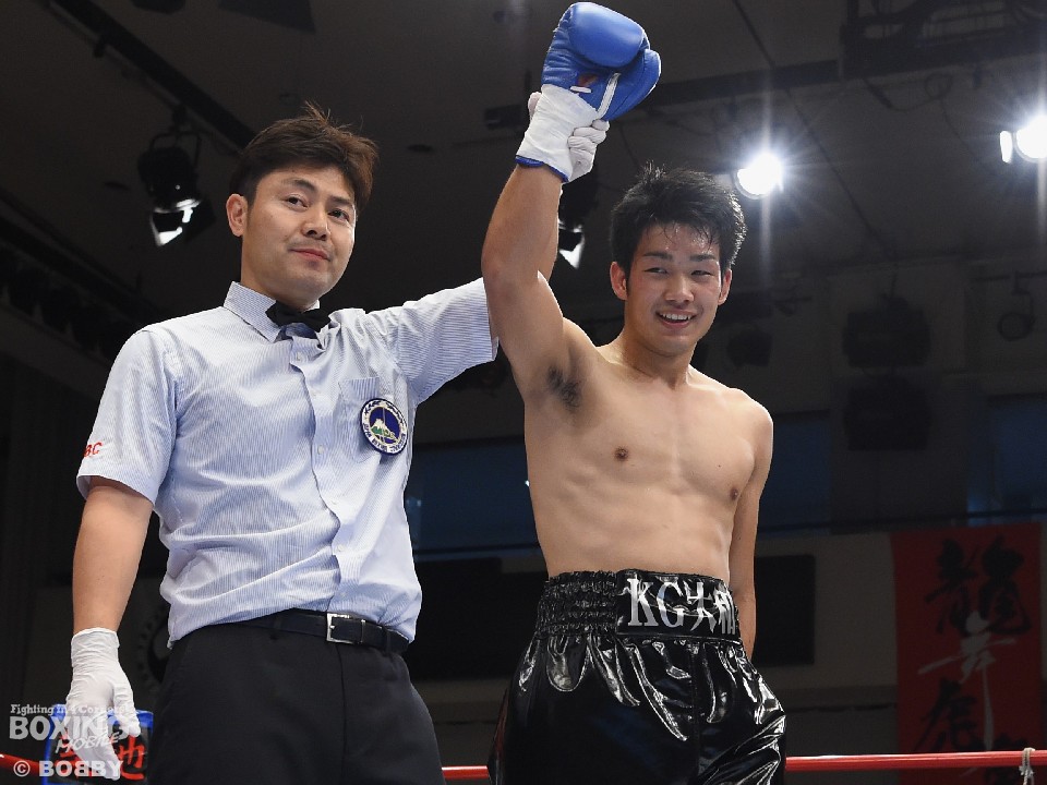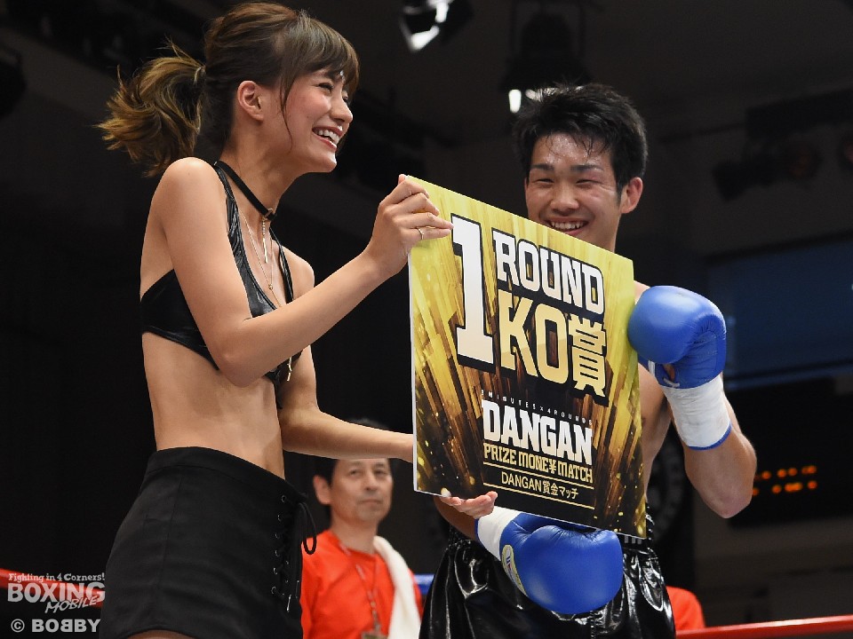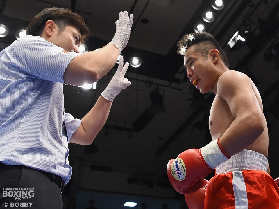 試合:4戦すべてKO決着の吉村が、アマチュア戦績9勝3敗、デビュー戦のヤンと対戦。スピードのあるヤンが立ち上がりから積極的に攻め、吉村も追い込まれながら左右を返す展開。激しいパンチの応酬から初回半ばに左を突いてヤンを倒した吉村は、再開後もワンツーで追い込みレフェリーストップを呼び込んだ。