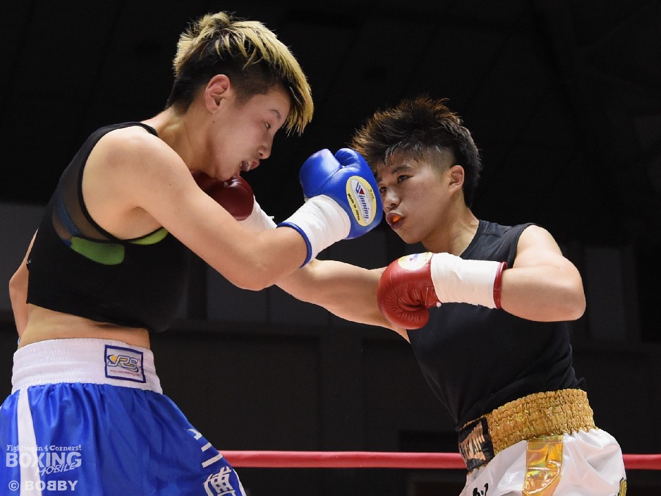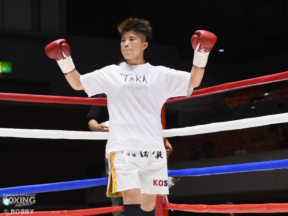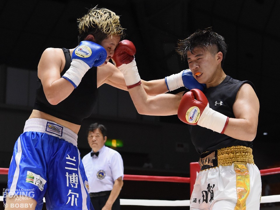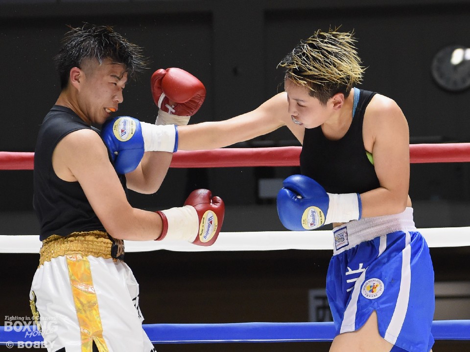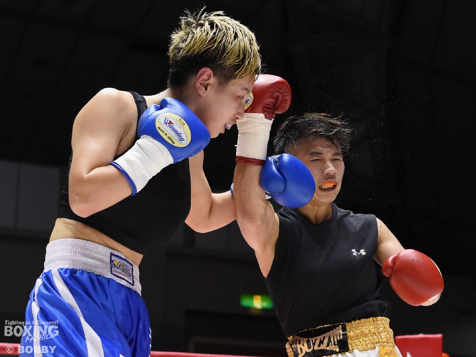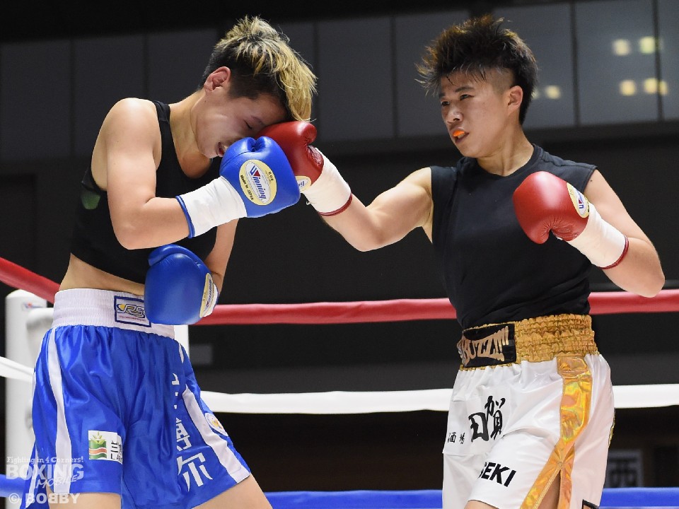 試合:開始と同時に小関がラッシュ、リャンも応戦し打撃戦となった。ともに攻撃偏重のため被弾が多い。2回、小関がボディも攻める。リャンも右を中心にパンチを返すが、後退が目立ち始め。前に出る小関、応戦するリャンという展開のなか、3回からリャンに疲労とダメージが見え始めた。それでもリャンは右を打ち返すなどして抵抗を続けた。最終回も両者は打ち合ったが、小関の上下への打ち分けが目を引いた。