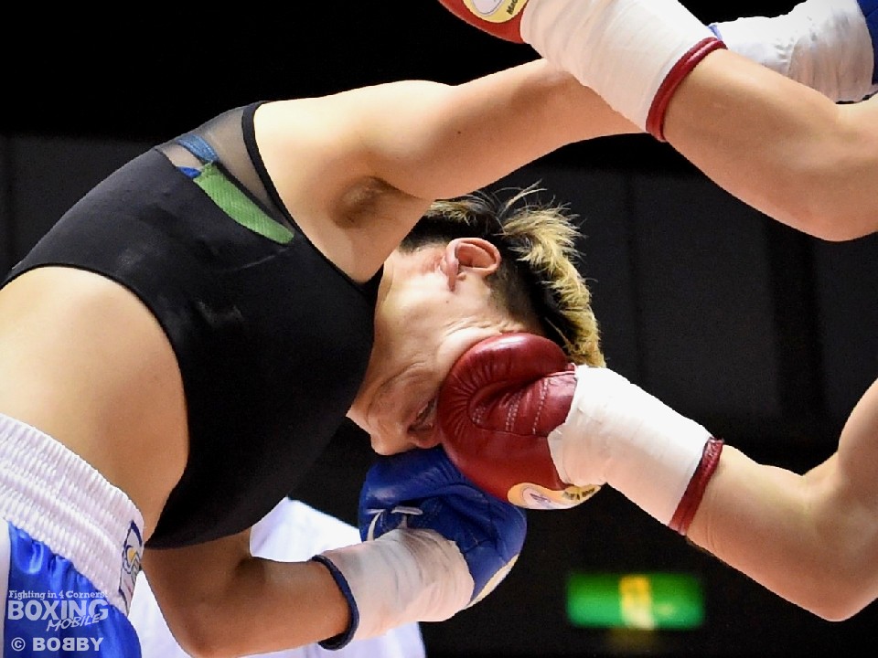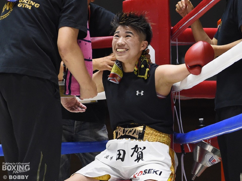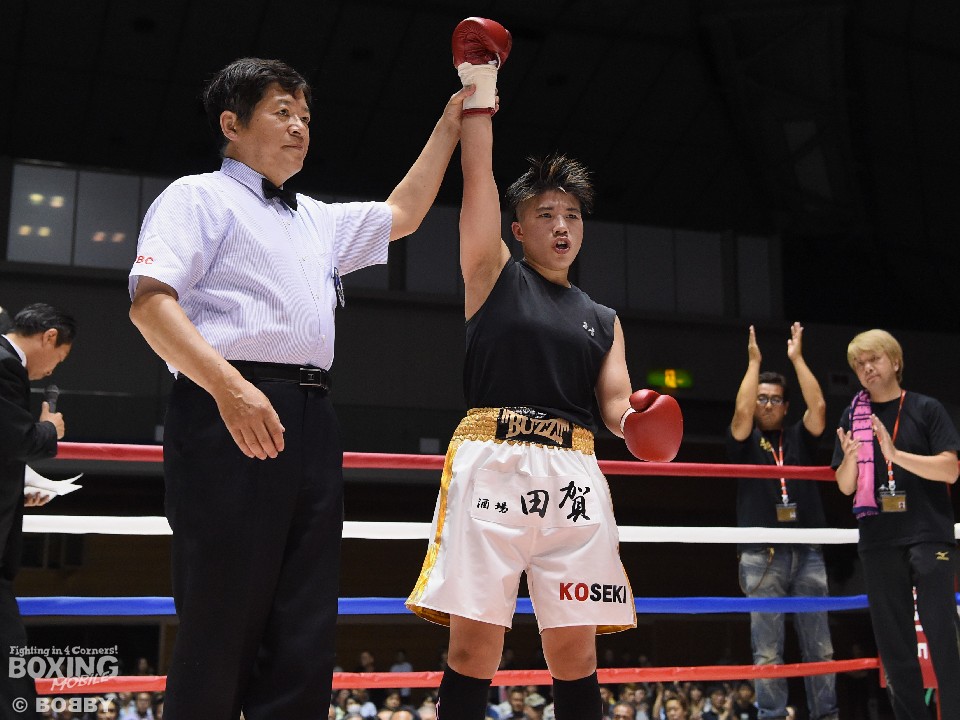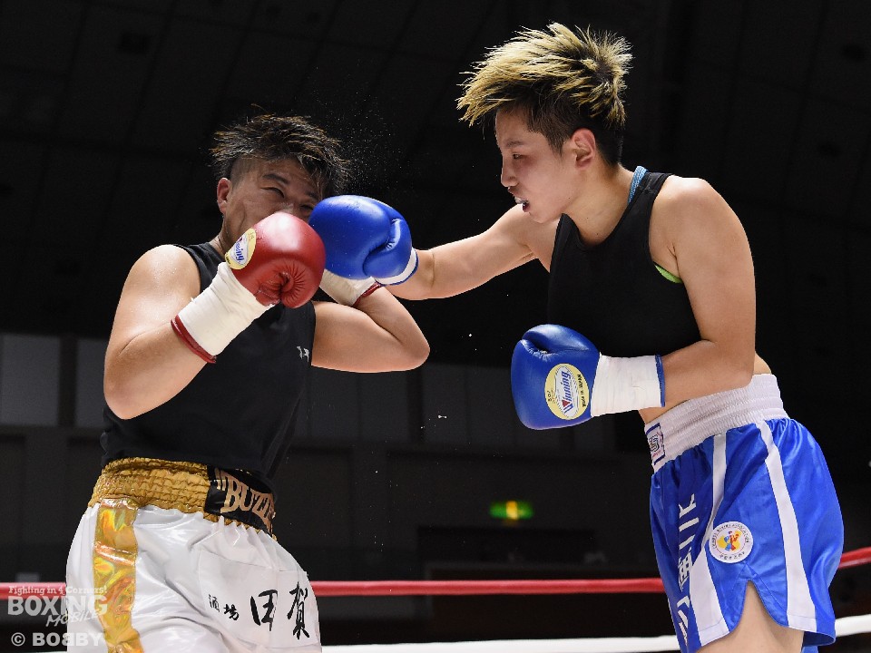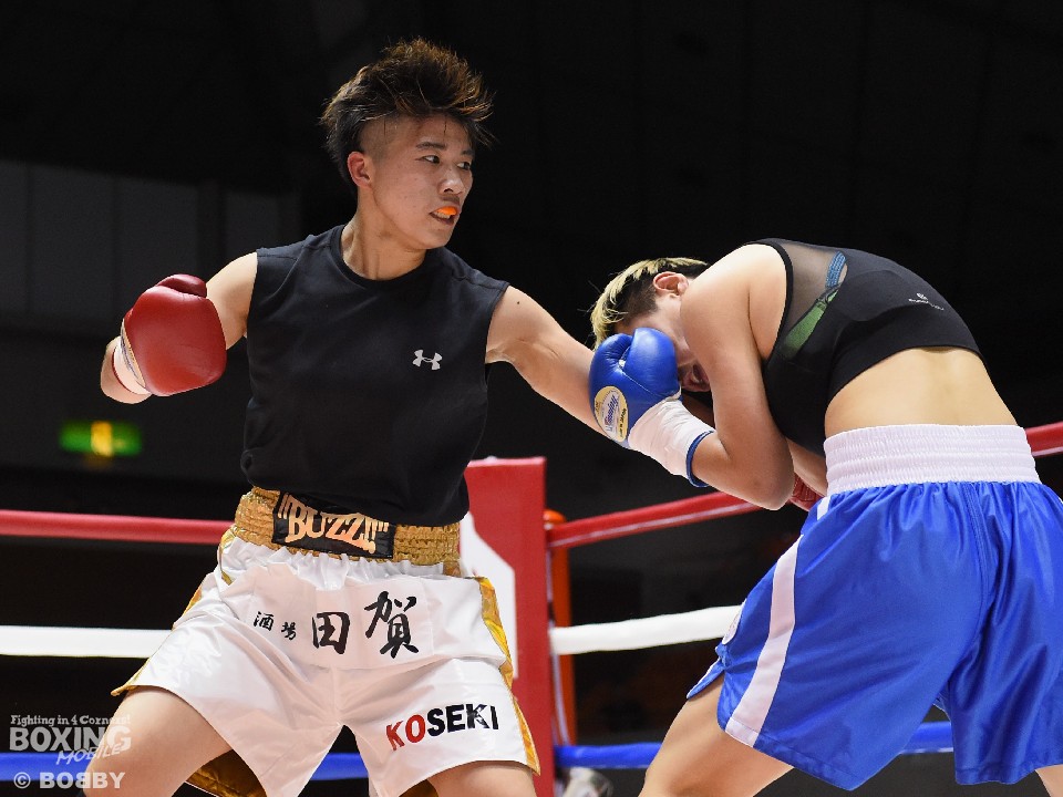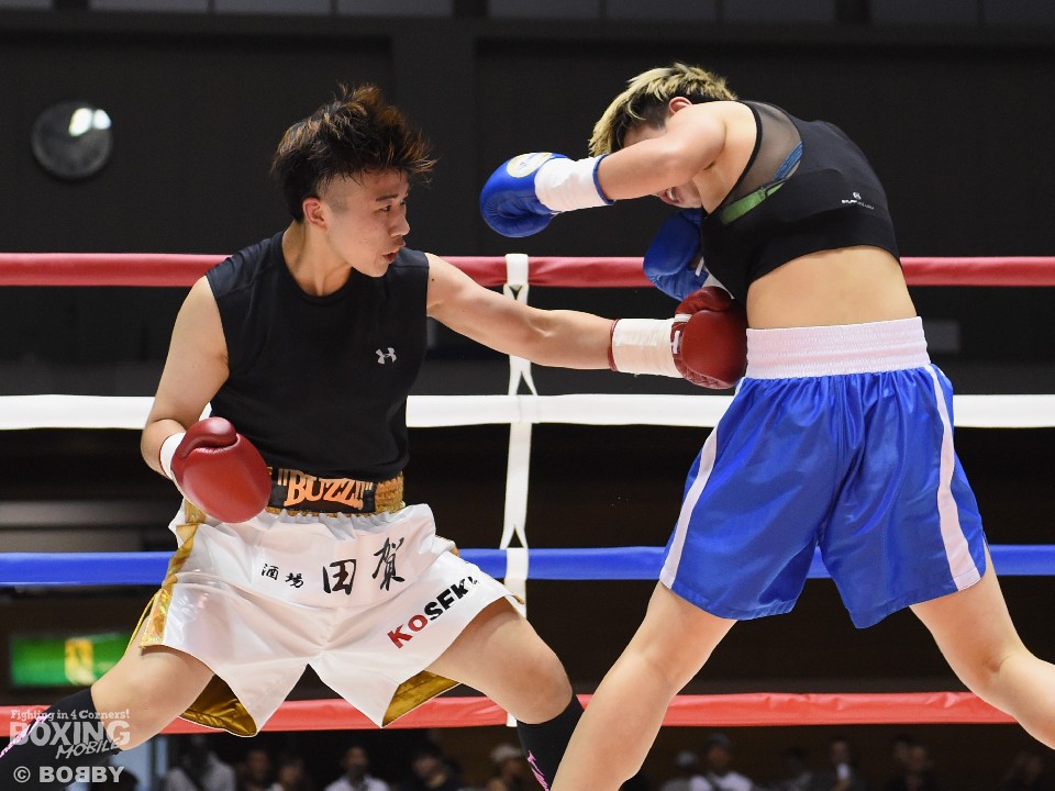 試合:開始と同時に小関がラッシュ、リャンも応戦し打撃戦となった。ともに攻撃偏重のため被弾が多い。2回、小関がボディも攻める。リャンも右を中心にパンチを返すが、後退が目立ち始め。前に出る小関、応戦するリャンという展開のなか、3回からリャンに疲労とダメージが見え始めた。それでもリャンは右を打ち返すなどして抵抗を続けた。最終回も両者は打ち合ったが、小関の上下への打ち分けが目を引いた。