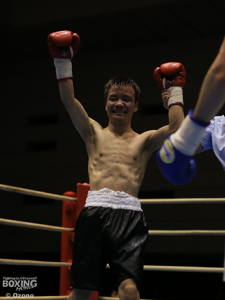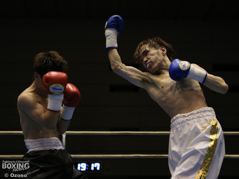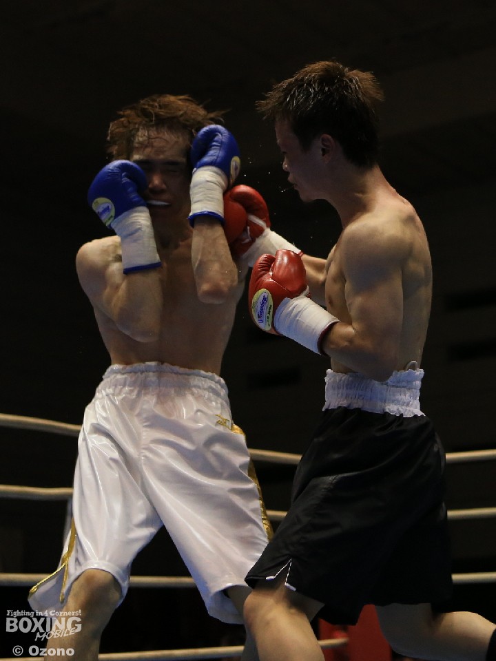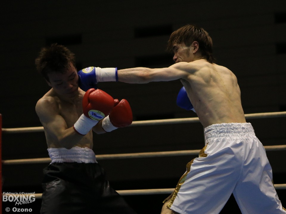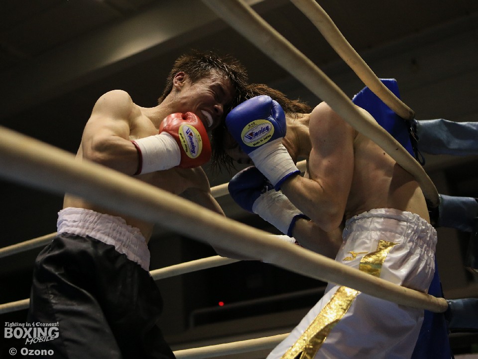 試合: 栗林はジャブから右アッパーを狙う。対して、エフは思い切りよく距離を詰め左右のボディから右フックを振るう。序盤は互角の打ち合いをみせた。2ラウンド終盤、エフの左ボディに思わず後退を始めた栗林、好機を得たエフは猛然と左右のボディを振るったがラウンド終了のゴングが鳴る。執拗なボディ攻撃で終始有利な試合運びを見せたエフが判定勝利を収めた。