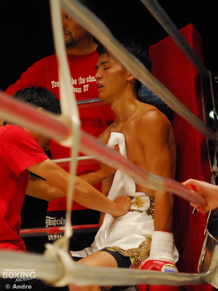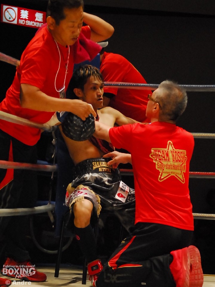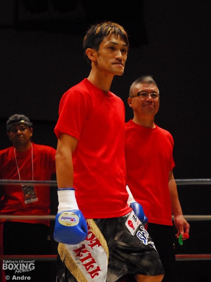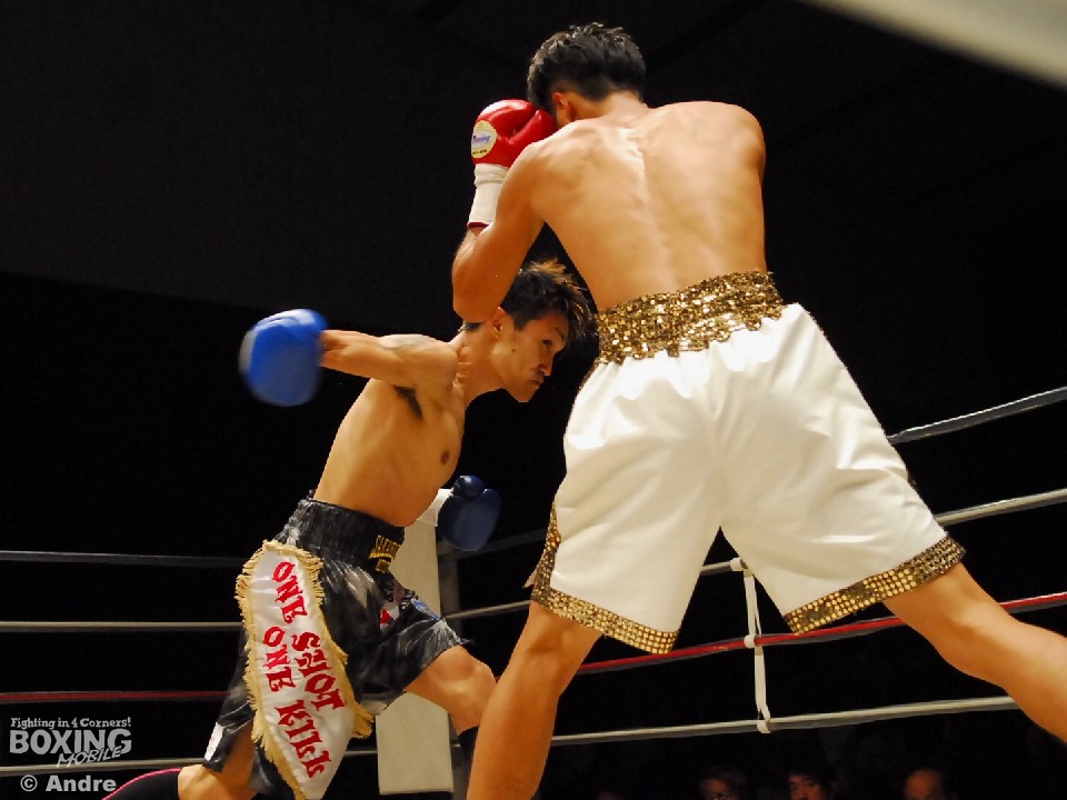 試合: 古谷は長い右ストレートを上下に散らす。島川は古谷の打ち終わりに右ストレートを狙う。2ラウンド、島川の右ストレートが決まり古谷がダウン。立ち上がった古谷だが、ダメージは深くラッシュかけた島川がレフェリーストップを呼び込んだ。