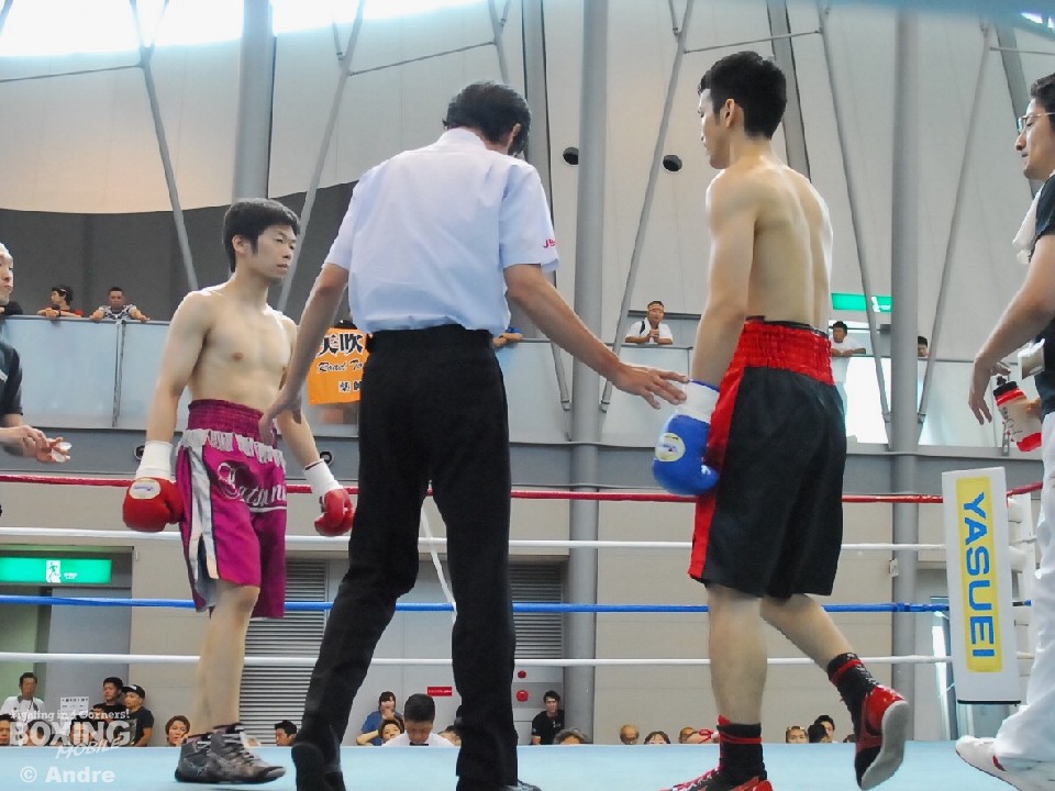 試合: サウスポー今田右ジャブからじりじりとプレスをかけると左ストレートを連打する。対して、今井は今田の打ち終わりに右ストレートをあてていく。1ラウンド、今田がバッティングで左目上をカット。中盤、ジャブを差し合う両者だが、ストレートの精度は今田が優勢に試合を進める。5ラウンド、相打ちでフックを打った両者同時にぐらつく場面を作るが決定打には至らず。5ラウンド、今田が今度は左目下をカットした。判定で今田が勝利を収めた。