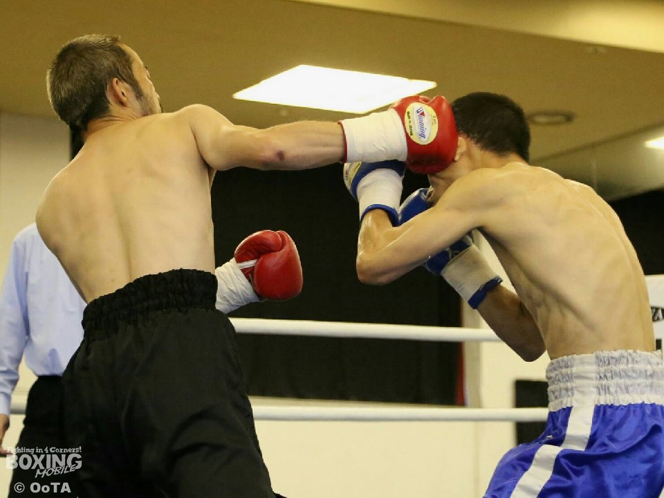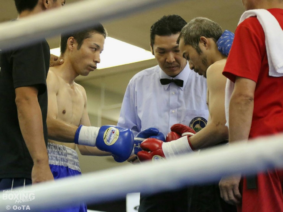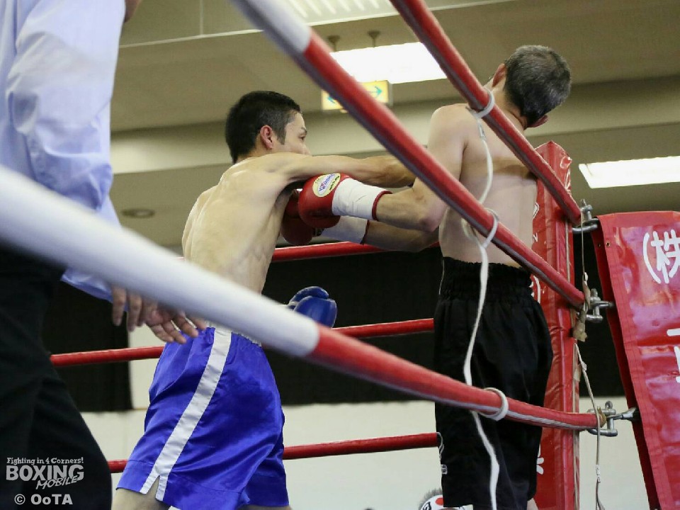 結果:ゴング開始と同時にいきなりの右で先制した森永はノーガード戦法で左右をフルスイングするも、野依がしっかりとかわすと単発ながら右を打ち込み反撃を開始。誘い込むように棒立ちとなった森永にそのまま連打を浴びせコーナーへ詰めると手の出なくなった森永を見てレフェリーが試合を止めた。
