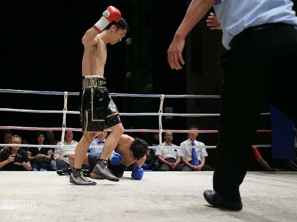 試合: 上谷はジャブから右を伸ばす。コンピチットは踏み込んでワンツーを打つ。1ラウンド終盤、上谷の左ボディがコンピチットのみぞおちに刺さるとコンピチットがダウン。立ち上がることができず10カウントを聞かせた。