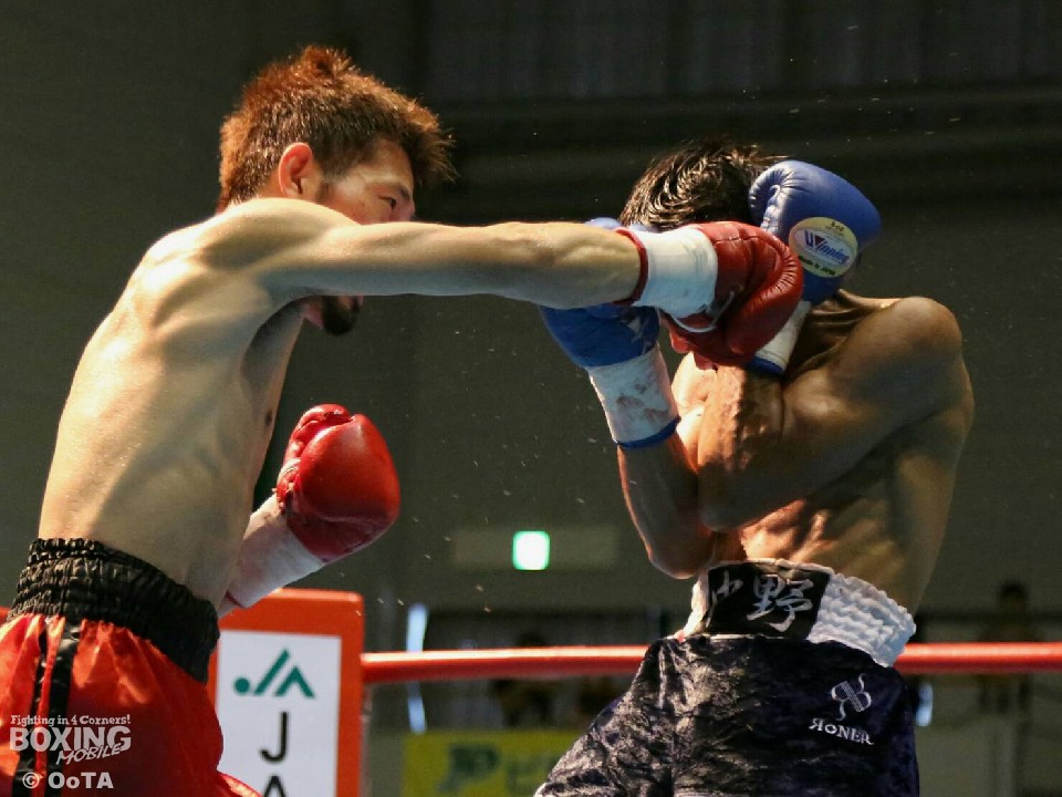 試合: サウスポーの中野は右ジャブから左ストレートを上下に散らす。対して、平島は上体でリズムを作ると右のカウンターを狙う。中盤、平島はカウンターをあてると一気に前に出て連打を浴びせるが、中野も右で応戦。一進一退に攻防を続ける。5ラウンド、偶然のバッティングで中野が右側頭部をカットした。最終ラウンドまで渾身の打ち合いを演じるも決定打には至らず。判定で平島が勝利を収めた。