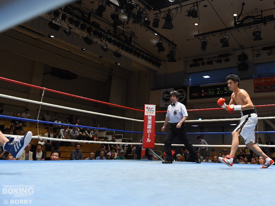 試合:高井がゴングと同時に右ストレートでデビュー戦の高井からダウンを奪った。意表をつかれたサウスポーの高井は、速い右ジャブを突いて立て直しを図るが、後藤の思い切りの良い右ストレートに遅れをとった。2回も右を痛打された高井だが、打ち終わりを狙うと連打で対抗。コーナーに詰まりながらも右を返し、後藤を慌てさせた。反撃に出た高井は3回も先手で仕掛け後藤を追い込んだが、右ストレートで下がらされると追い討ちを掛けられ、決め手に欠けた。最終4回は後藤のラッシュに耐えながらワンツーで対抗。最後まで左ストレートを狙い続けたが、もう一歩前に出ることができず時間切れ。判定は初回にダウンを奪った後藤に軍配があがった。