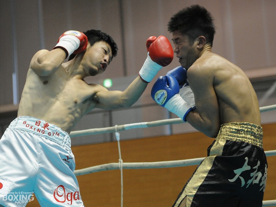 試合:ゴングと同時にワンツー、ボディで仕掛けた渡邊に対し、小川も下から上に返し応戦。手を休めずに我慢比べの打ち合いが続いた。2回は一歩引いて右ストレートを好打した小川だが、渡邊も踏み込んでは左右をまとめ、一進一退のまま後半に。3回は渡邊がボディを効かせ小川を押したが、4回は小川も左ボディ、右ストレートで食らいつき、試合を盛り上げた。フルラウンドの打ち合いは、手数で上回った渡邊に軍配があがった。