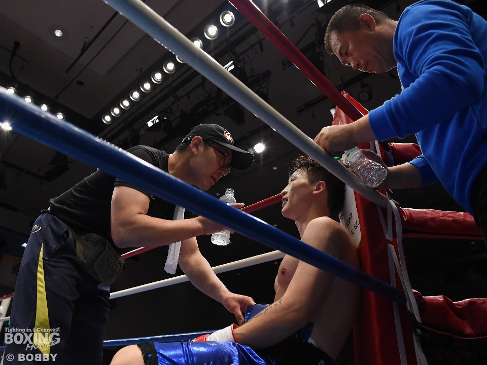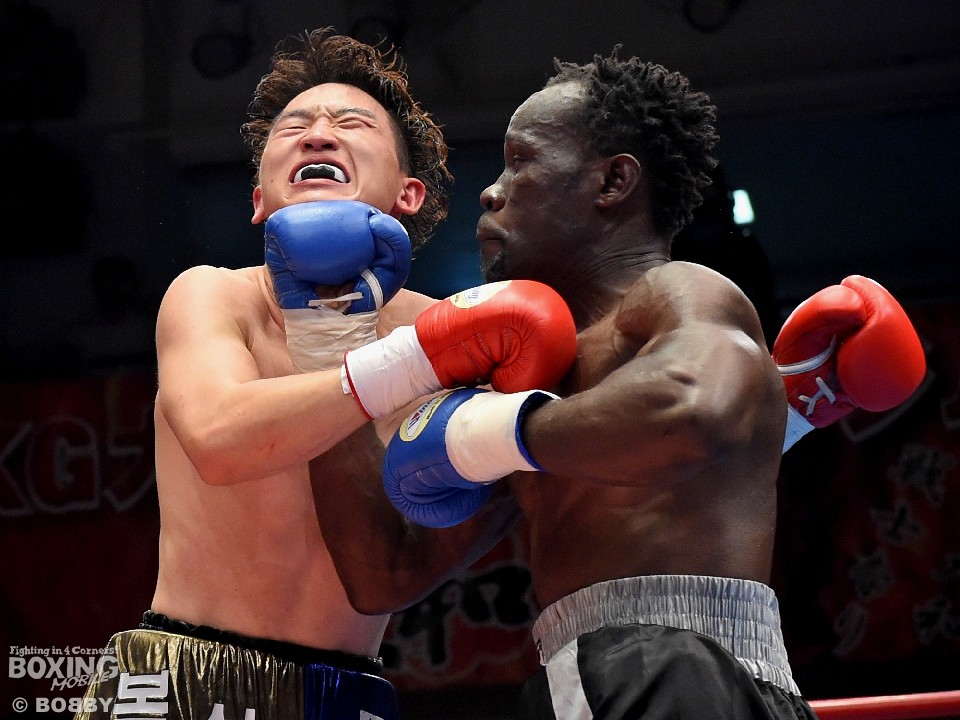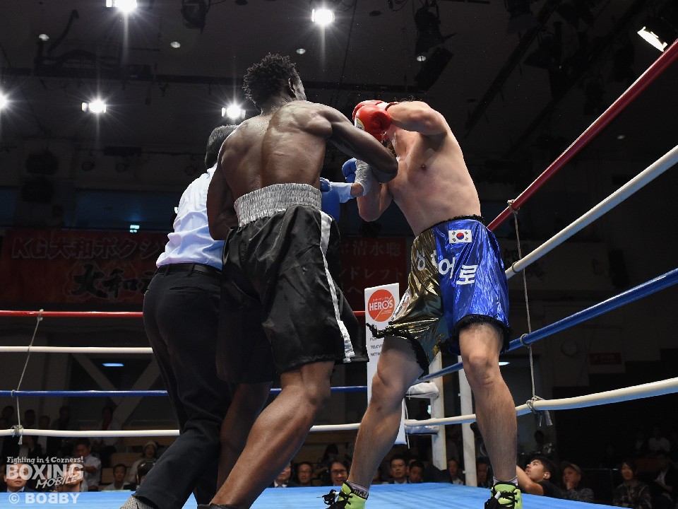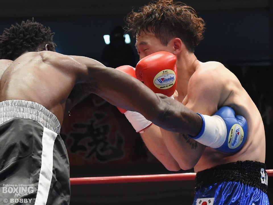 試合:3連敗中のピーターは立ち上がり、ジャブ、ワンツーで先に仕掛けるマに詰めての左フックで応戦。さらにマの離れ際に左を合わせ、踏み込んでの右クロスもヒットさせた。2回はマがアッパー、フックの連打で攻め立てるが、これをワンツー、フックで迎え撃ったピーターが有効打で上回った。顔を弾かれ、仰け反るマは辛うじて耐えていたが、最後は左フックで崩れかけたところでレフェリーに抱きかかえられた。