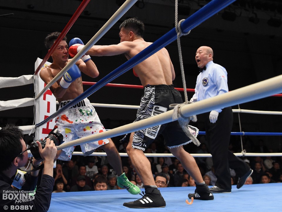 試合:フットワークを活かしてプレスをかける山口に対し、本吉はジャブで距離を保ちながら右ストレートを狙う。2回には左ボディからワンツーに繋げた本吉だが、山口もボディワークよくパンチを外しては右ストレート、左ボディとヒットを重ねた。本吉も4回は左に切り替えるなど、変則的な攻撃で山口のリズムを崩しにかかるが、山口は右ストレートを軸に高い集中力を持って迎撃。5回に一気のワンツー連打でレフェリーストップを呼び込んだ。