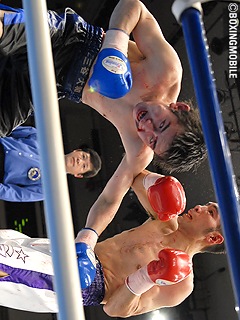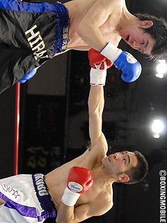 試合:両者、積極的に打ち合う序盤。大久保がワンツー連打で攻め込めば、平井も左ボディを返し、大久保の足を止めにかかる。平井の左ボディが的確にヒットするも、大久保のワンツー連打が手数で上回る。中盤、大久保のワンツーがクリーンヒットし、平井は左目上をカット。ここで大久保はワンツーを連打で打ち込み、平井からダウンを奪おうとするが、平井もここは持ち堪える。終盤、平井もジャブ・左ボディ・右ストレートで反撃し、ポイントの挽回に打って出るが、大久保がワンツーを返し打撃戦に。大久保がワンツーを的確にヒットさせポイントをリード。判定3-0で勝利した。