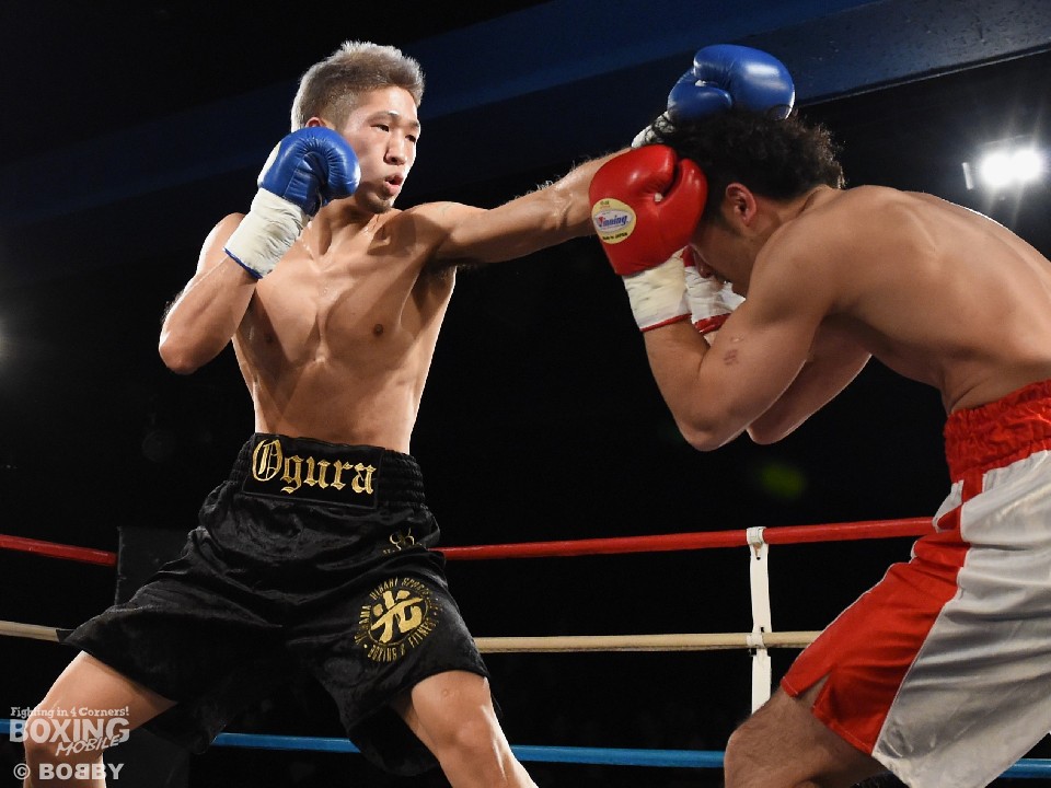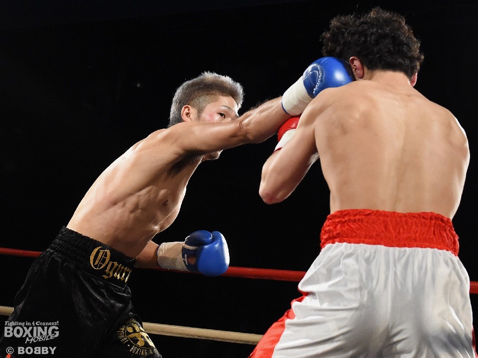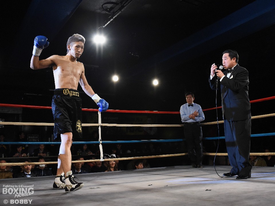試合:デビュー戦の吉田がガードを固め右を繰り出し前に出るが、小倉はジャブを突きながらフットワークを駆使。立ち上がりから主導権を握るとジャブ、右ストレートを的確にヒットし、顔を跳ね上げグロッキー状態の吉田にレフェリーストップを呼び込んだ。