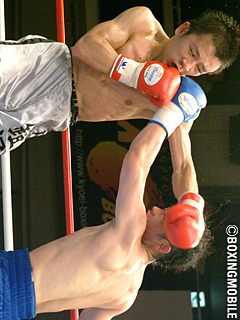 試合:4回戦時、現ライト級4位・中森宏と引分た角田と昨年新人王を初回KOしている鎧塚の対戦。ジリジリでる鎧塚に対し動きつつ右を狙い打つ角田のペース争いから始まり、コンパクトな連打から左ボディに繋げる鎧塚の攻めが目立ち始める。共にオフェンスに多彩性を欠きやや単調なまま試合は判定に。結果はスプリットで鎧塚を支持した。