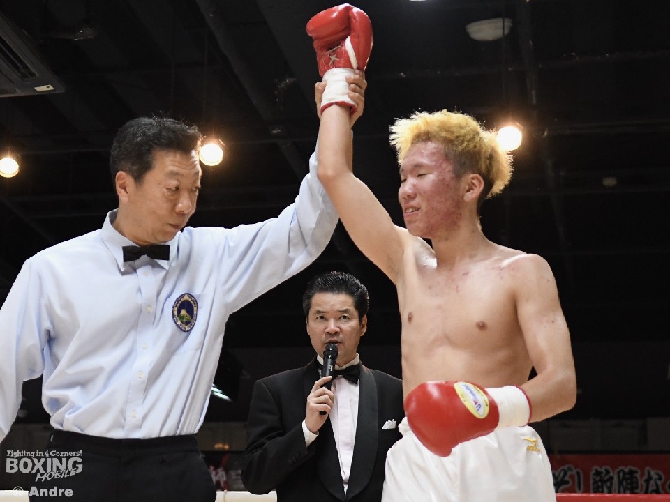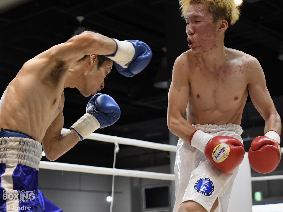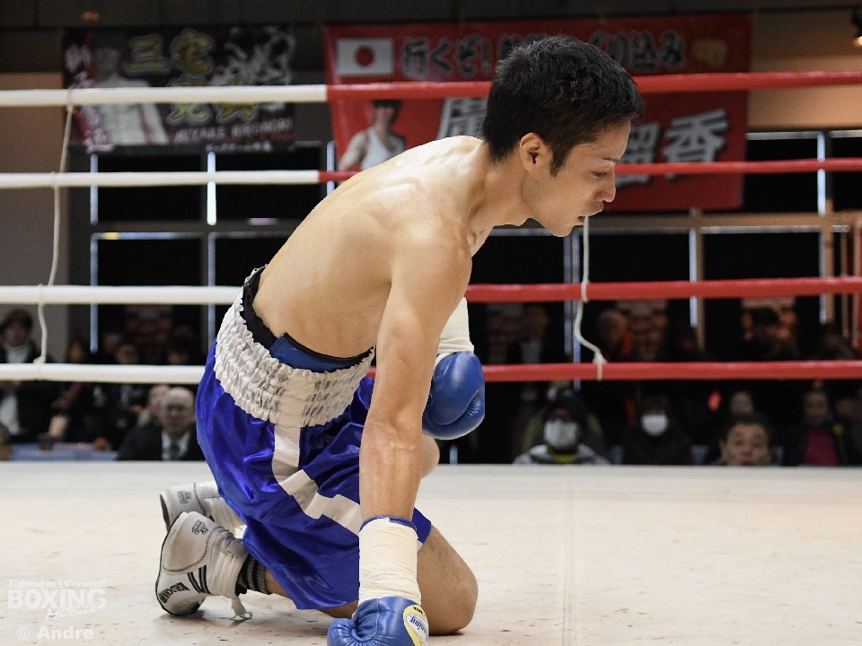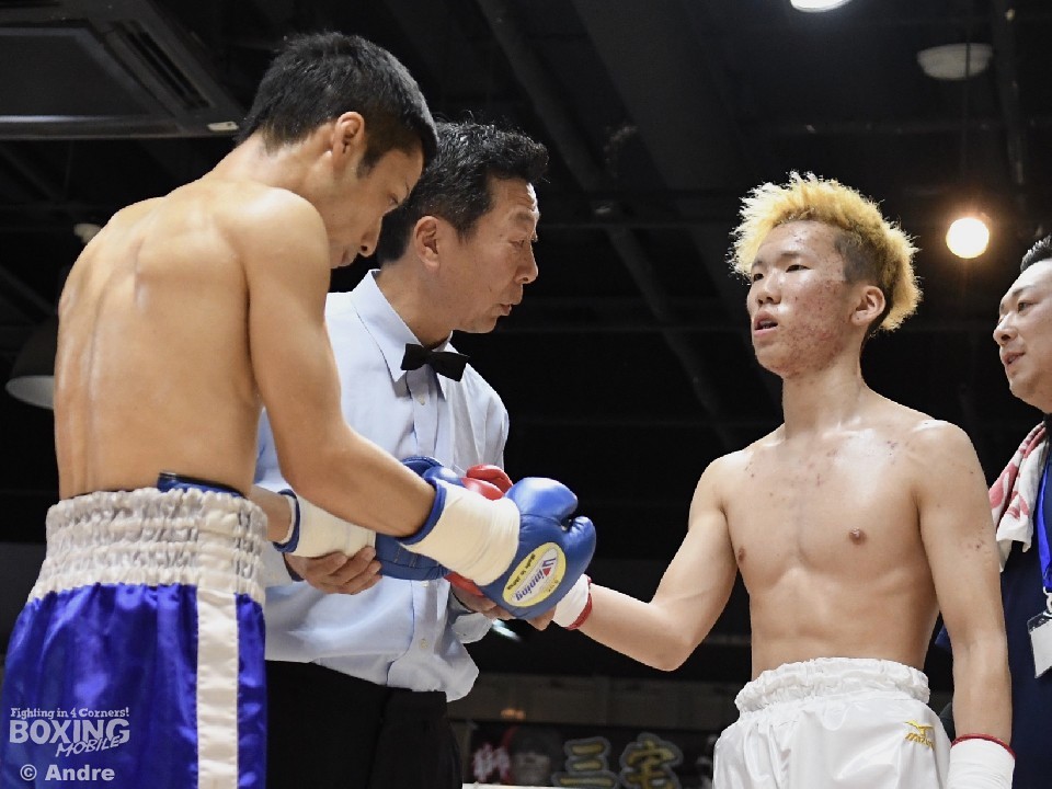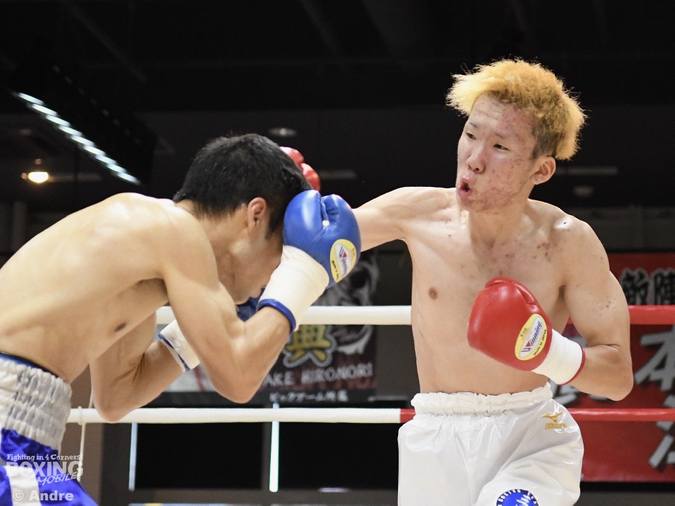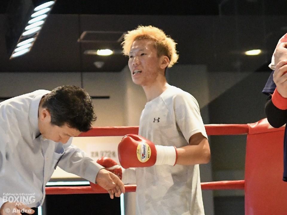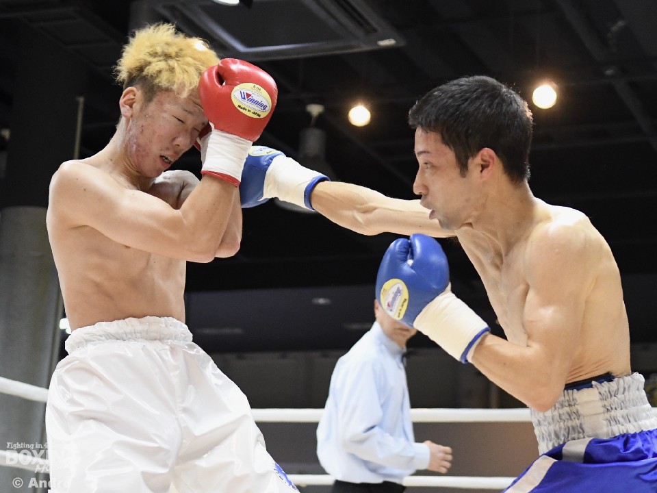 試合: デビュー戦の楠本はジャブから右アッパー・右ストレートを狙う。対して、野依は楠本の打ち終わりに左右のフックをあてていく。1ラウンド中盤、楠本の右が決まり野依がダウン。ここは持ちこたえた野依だが、続く2ラウンド、左フックからの右をもろにもらい2度目にダウン。立ち上がるがレフェリーが試合を止めた。