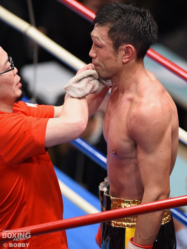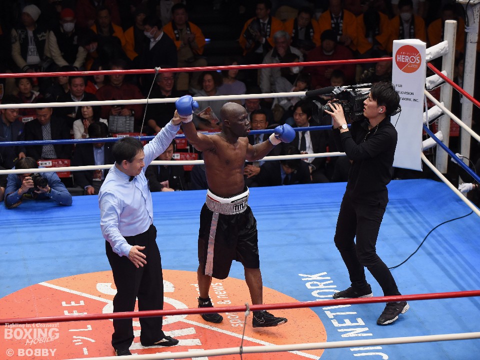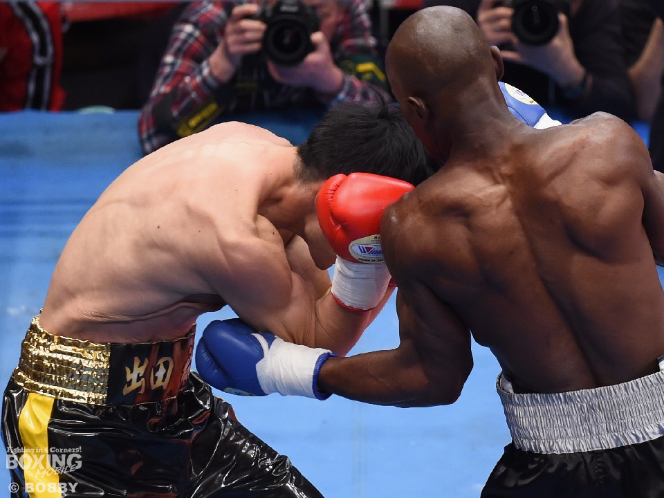 試合:ジムを移り4年ぶりに復帰した出田。左ジャブを先に突いて主導権を握りに出たが、ピーターもガードを固めながらジリジリと距離を詰め、ジャブの打ち終わりに左フック、右クロスをヒット。早くも出田を下がらせたが、ロープを背負った出田もしぶとく左フックから右ストレートを返し、致命打を許さなかった。3回、出入りの足を速めた出田だが、ピーターの右を浴びると体が泳ぎ、そのままラッシュされピンチ。ここは懸命に打ち返し乗り切り、4回はボディ狙いで反撃に出たが、出田もボディを効かされ状況は変わらず。それでも終盤は出田が被弾覚悟で打ち合い、ピーターを慌てさせたがあと一歩及ばず。復帰戦を勝利で飾ることはできなかった。