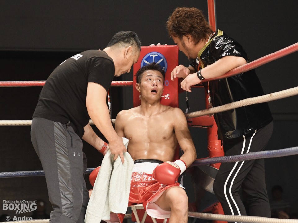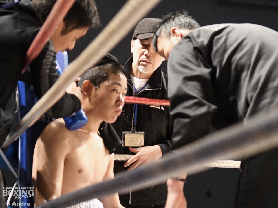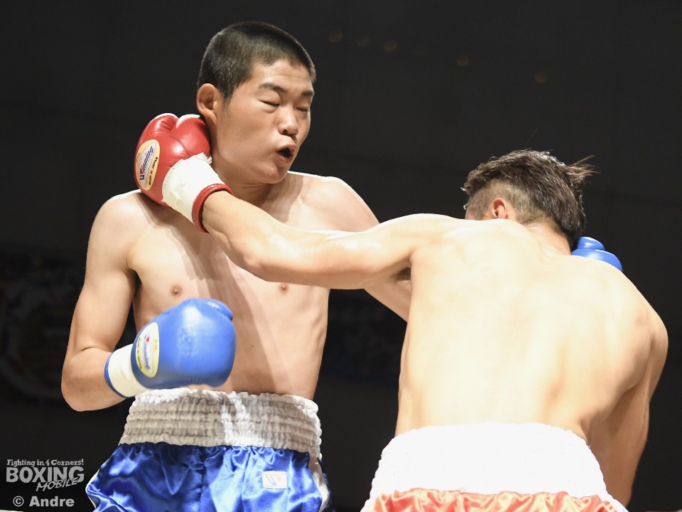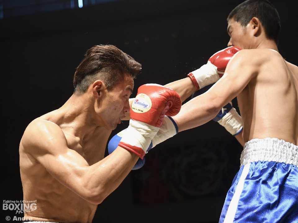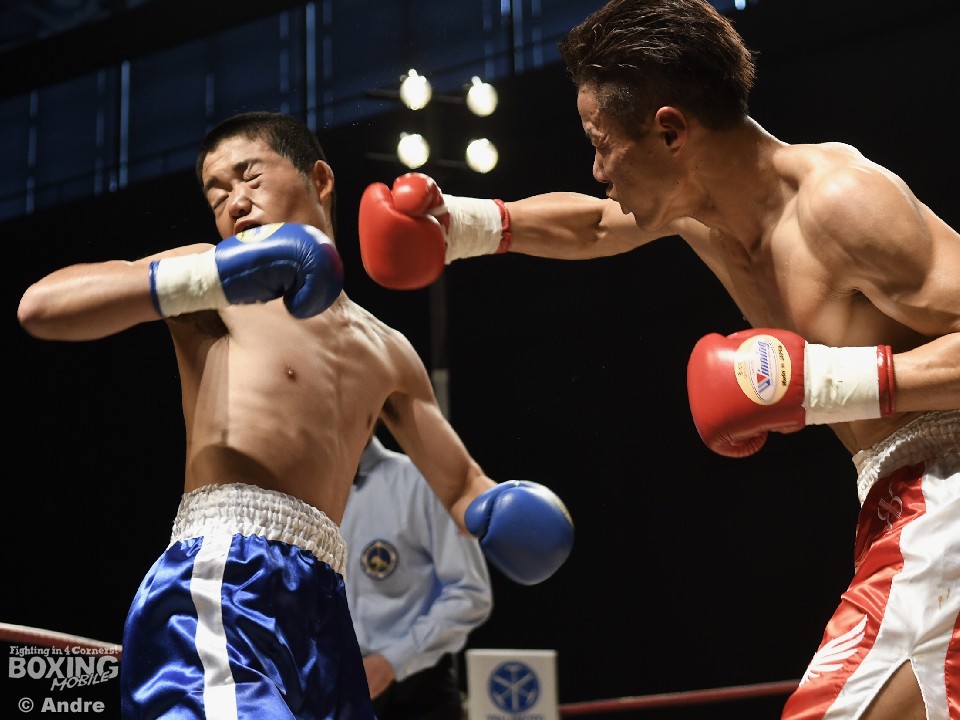 試合:加藤は、低い姿勢で右ジャブを突き上げる。対して、北川はワンツー・左フックを狙う。2ラウンド、距離の噛み合った両者は打ち合いを演じるが決定的な場面は作れず。すると、3ラウンド、加藤の左フックをモロにもらった北川が後退を始め防戦一方になったところでレフェリーが割って入り、試合終了。