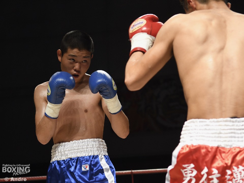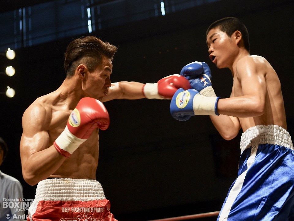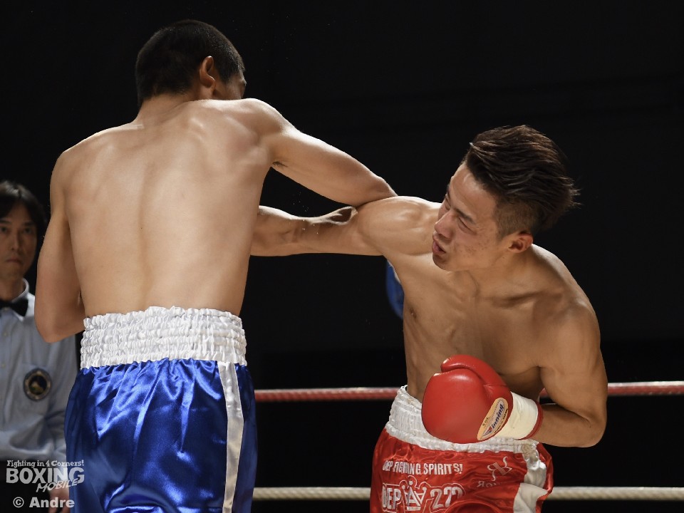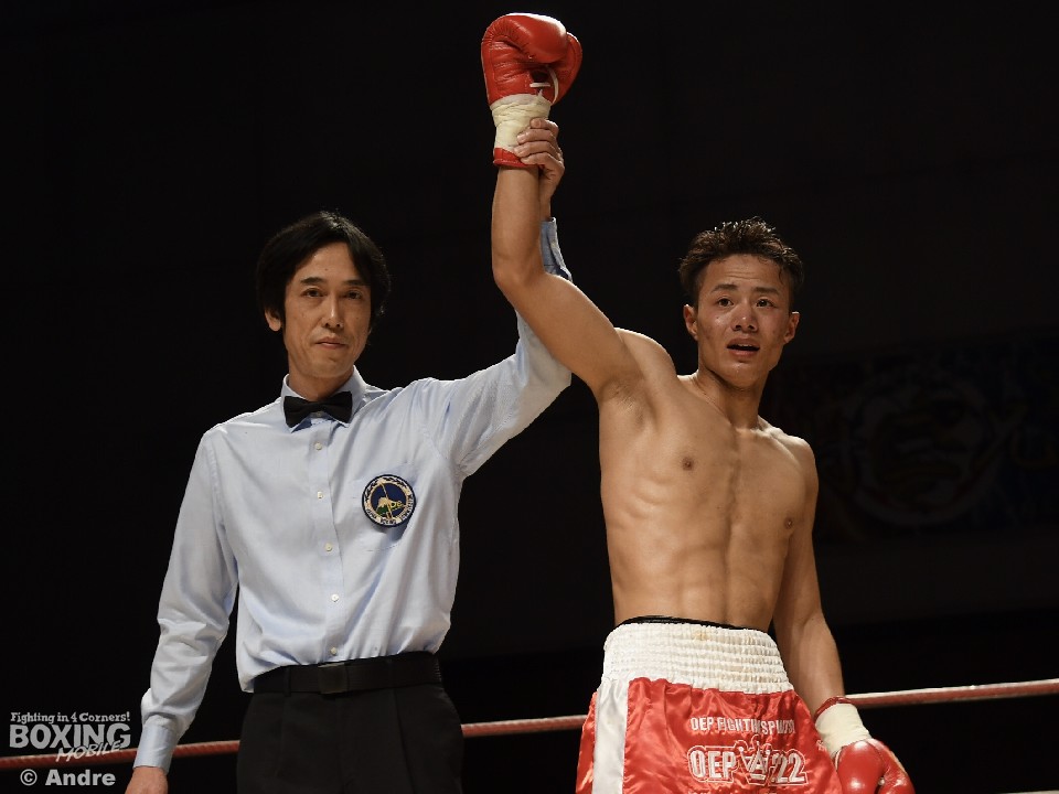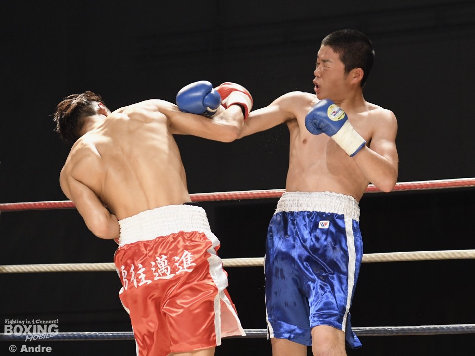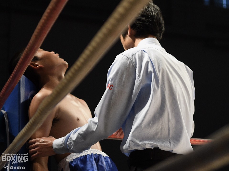 試合:加藤は、低い姿勢で右ジャブを突き上げる。対して、北川はワンツー・左フックを狙う。2ラウンド、距離の噛み合った両者は打ち合いを演じるが決定的な場面は作れず。すると、3ラウンド、加藤の左フックをモロにもらった北川が後退を始め防戦一方になったところでレフェリーが割って入り、試合終了。