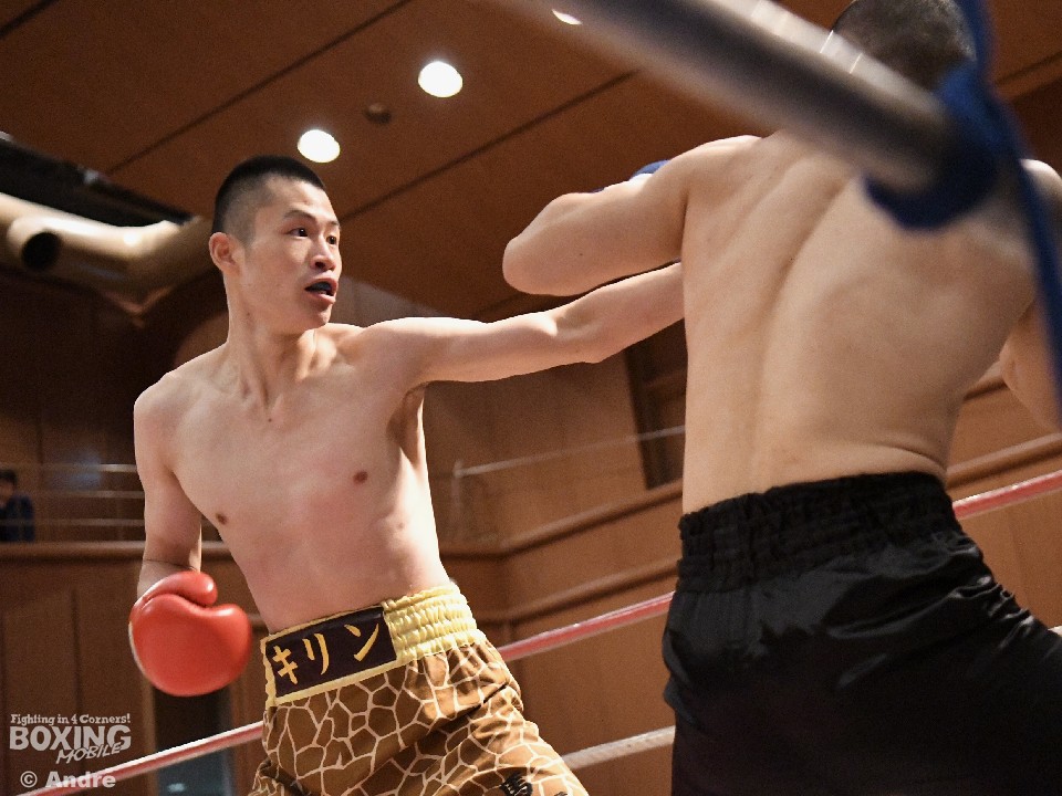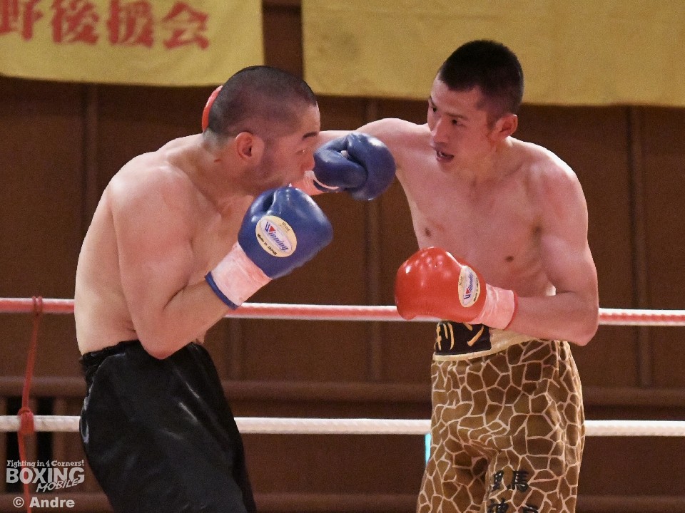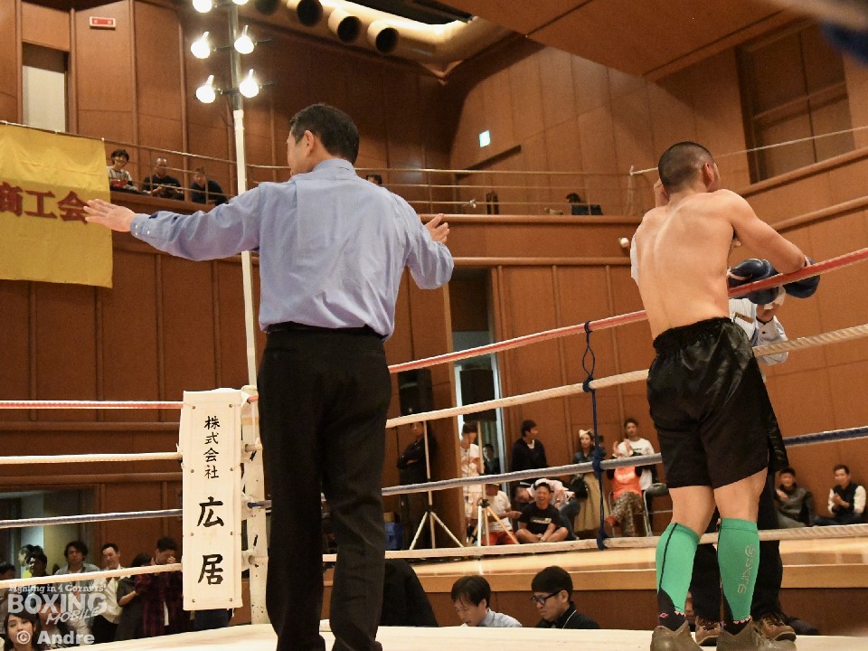 試合:日本と東洋太平洋でランキングされている神田が宮崎を迎えての65kg契約8回戦。体格で勝る神田は左で宮崎の出端を抑えると、左ボディから右ストレートを狙う。対して、宮崎はガードを固め、神田の動きを見極めると打ち終わりに右ボディをヒット。中盤、なんとか距離を縮めたい宮崎はプレスを強めボディを狙うが、神田の右を被弾してしまい、4ラウンドには神田の右ストレートで左目上をカットした。5ラウンド、勝負をかけた宮崎は被弾覚悟で前に出ると右フックを入れるが神田も右を打ち続けた。敵地で善戦した宮崎だが、左目上の負傷が悪化しドクターのアドバイスを聞いたレフェリーが試合をストップ。神田がTKO勝利を飾った。