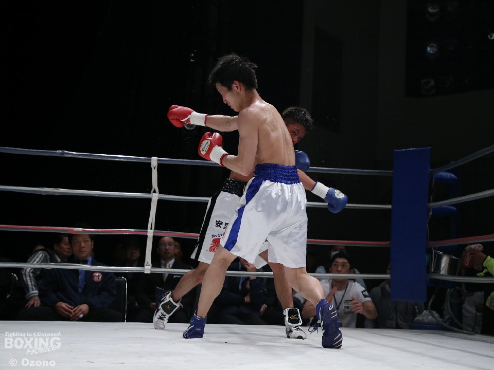 試合:ワンツーから右にボディを伸ばす鶴海に対し、デビュー戦の有津は相手の入り際に右クロスを合わせ、2回もミドルレンジから左フックとボディを好打。鶴海もロングのオーバーハンドを当てるが、3回に右を浴びダウン。再開後は激しく打ち合い挽回に出るが、ダメージが残り、4回も有津に詰められてしまった。