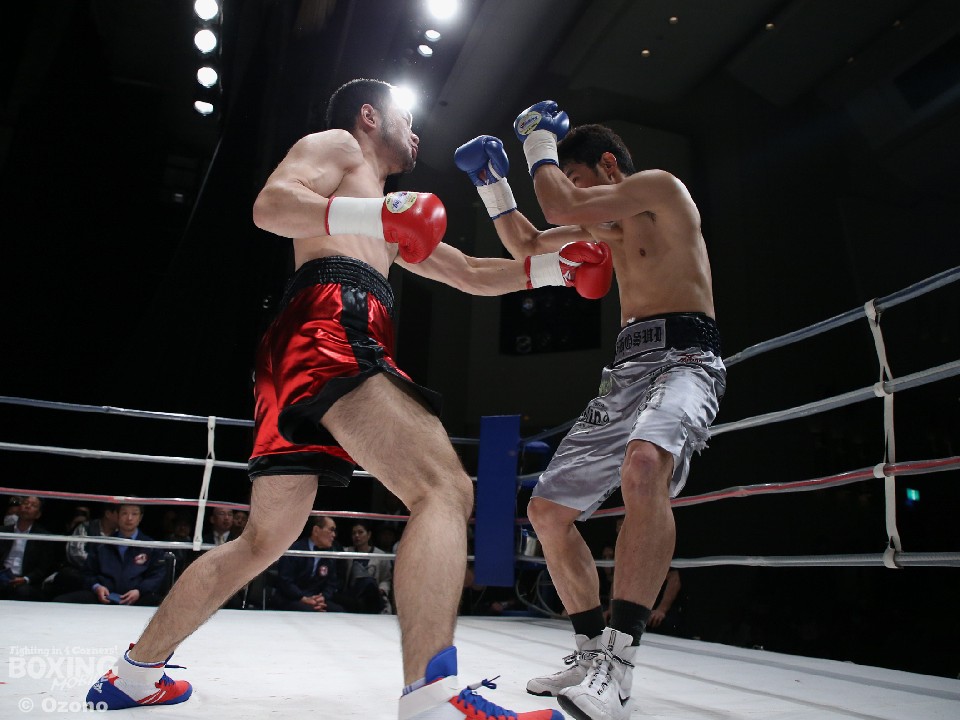 試合:サウスポー同士の一戦は、ハンマーが一気に距離を詰め、これに北島が右フックを合わせスタートしたが、2回は距離が合わず互いに手数を落とした。3回、ハンマーは再び距離を詰め強打を振りますが、クリーンヒットは奪えず。それでも4回に右フックで北島の顎を跳ね上げるなど攻勢を印象づけた。