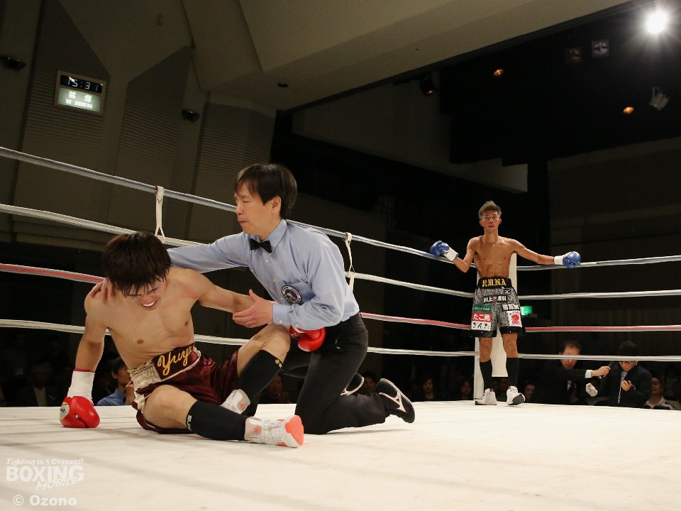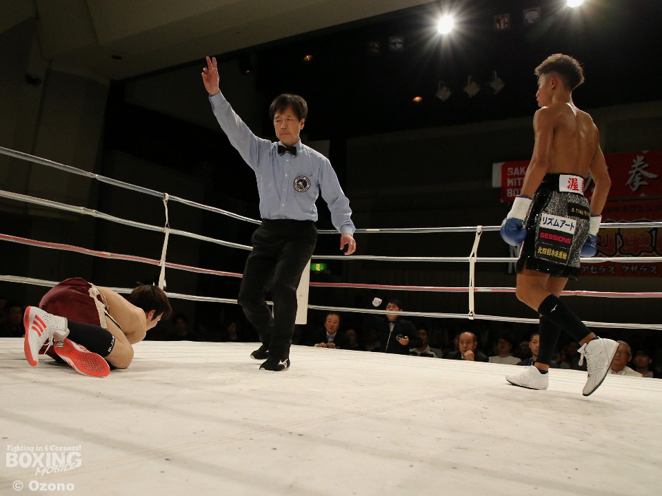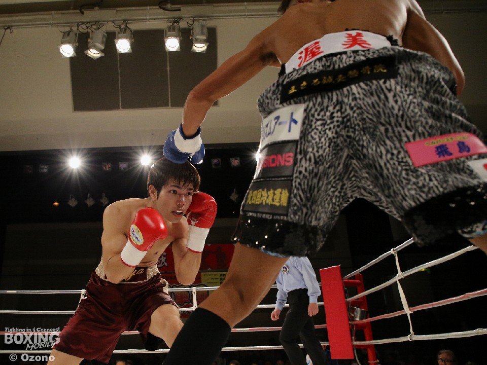 試合:立ち上がり、原はロングレンジからジャブを散らし距離をキープ。三浦は中に入りたいがワンツーを好打されると、3回にショートの右を浴びダウン。ここは立ち上がるが、原の狙いすました右で2度目のダウンを喫し、レフェリーストップとなった。