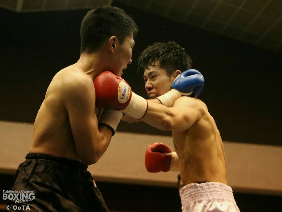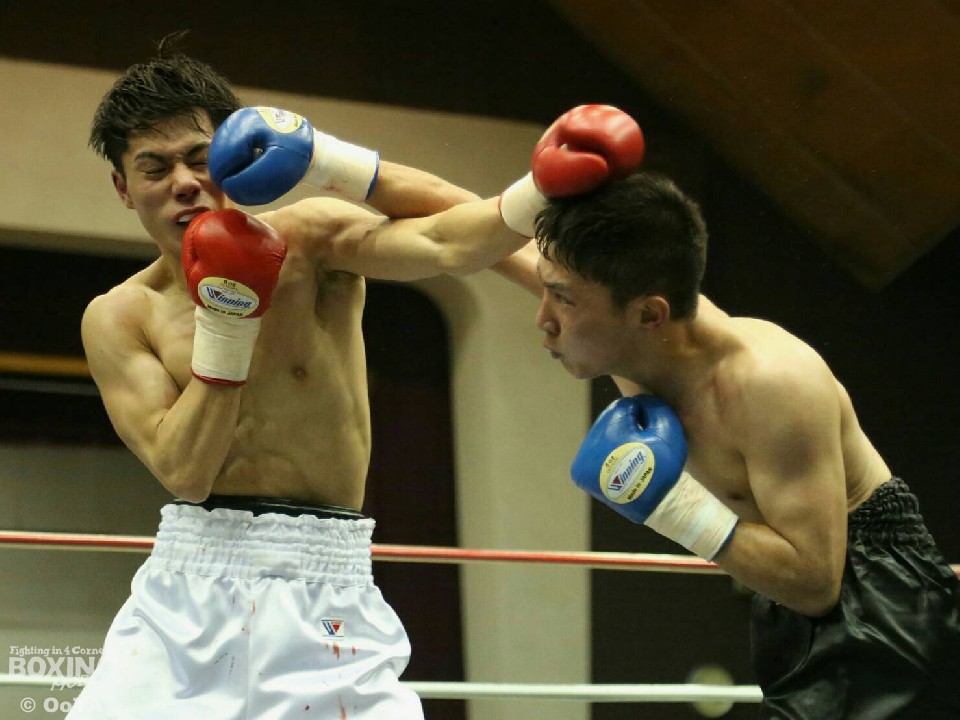 決定:互いにジャブを散らして距離を削り合う。2回に生田がクロスレンジで右をヒットさせペース争いを一歩リードした。攻める生田に上手く手が出せない場面があるも、粘り強く凌いで打ち返す中山が最終回まで打ち合いを挑み勝敗は判定へ。いち早くペースを手繰り寄せた生田が判定で初勝利を手にした。