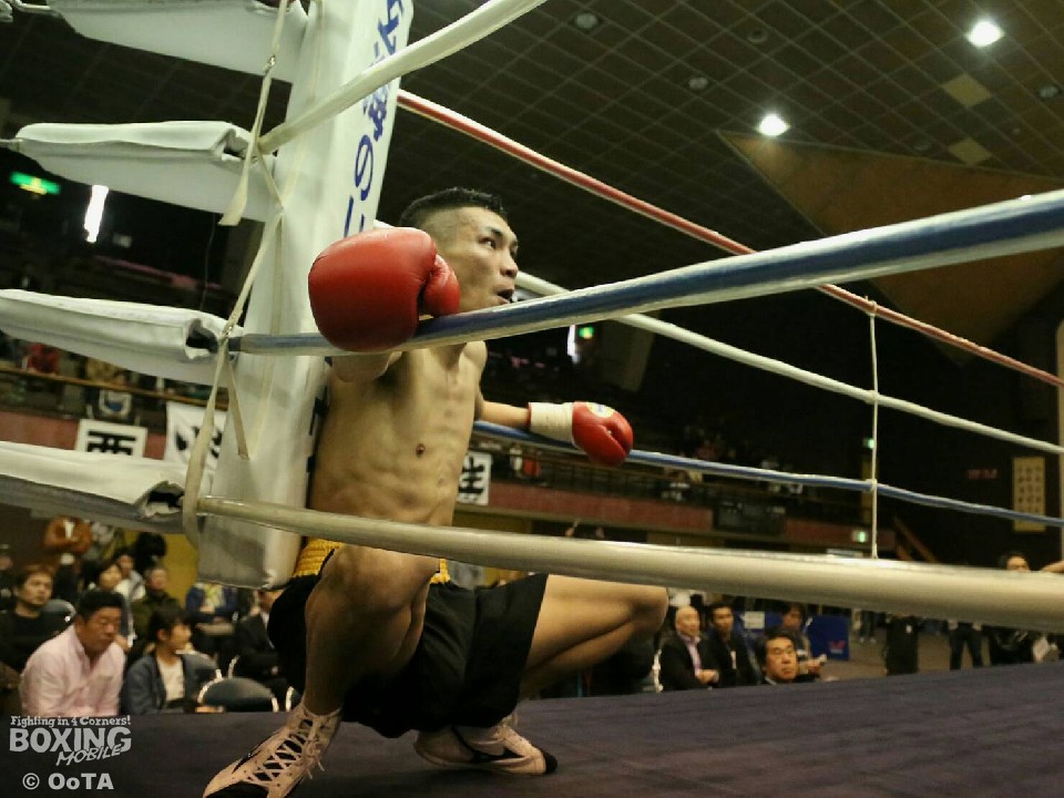 変則的なリズムに乗って攻める中島だが、高田のパワーに押される場面が4回に入ると見え始め、コーナーを背負う展開が増え始めると最終回、高田がラスト1分を切った所でコーナーに詰めると右フックをカウンターで打抜きポイントを突き放すダウンを演出。