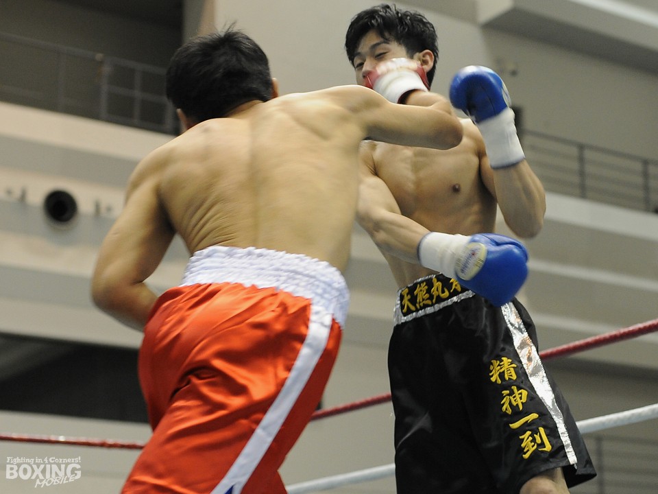 試合:サウスポーの下田が懐深く右回りに動き、プレスの川内を左ボディストレートで攻め立てるが、ラウンド終盤に右で反撃されると体勢を崩し、追撃打でダウン。カウント途中で立ち上がるもファイティングポーズが遅れ10カウントが数え上げられた。