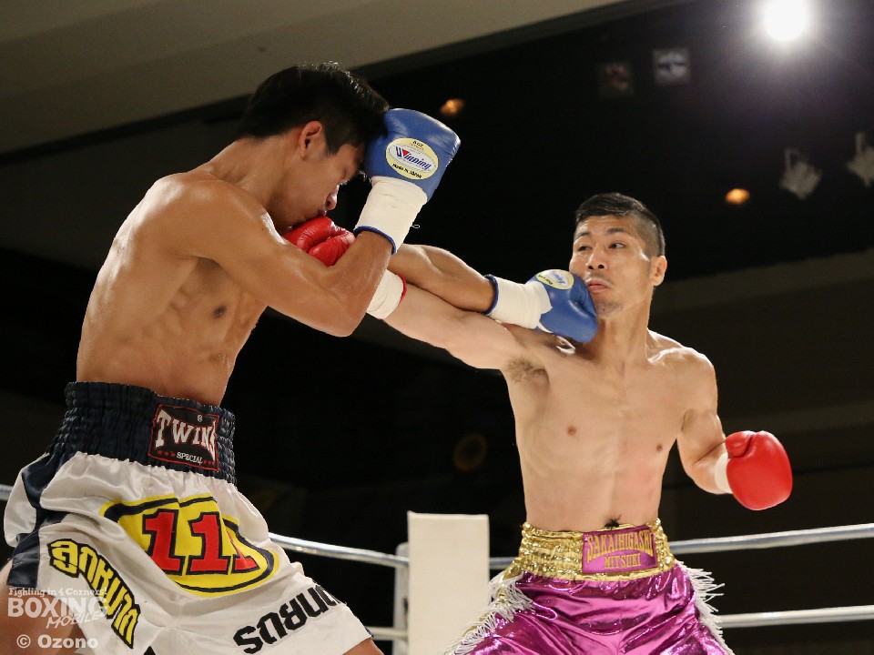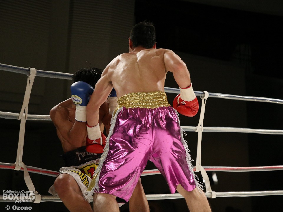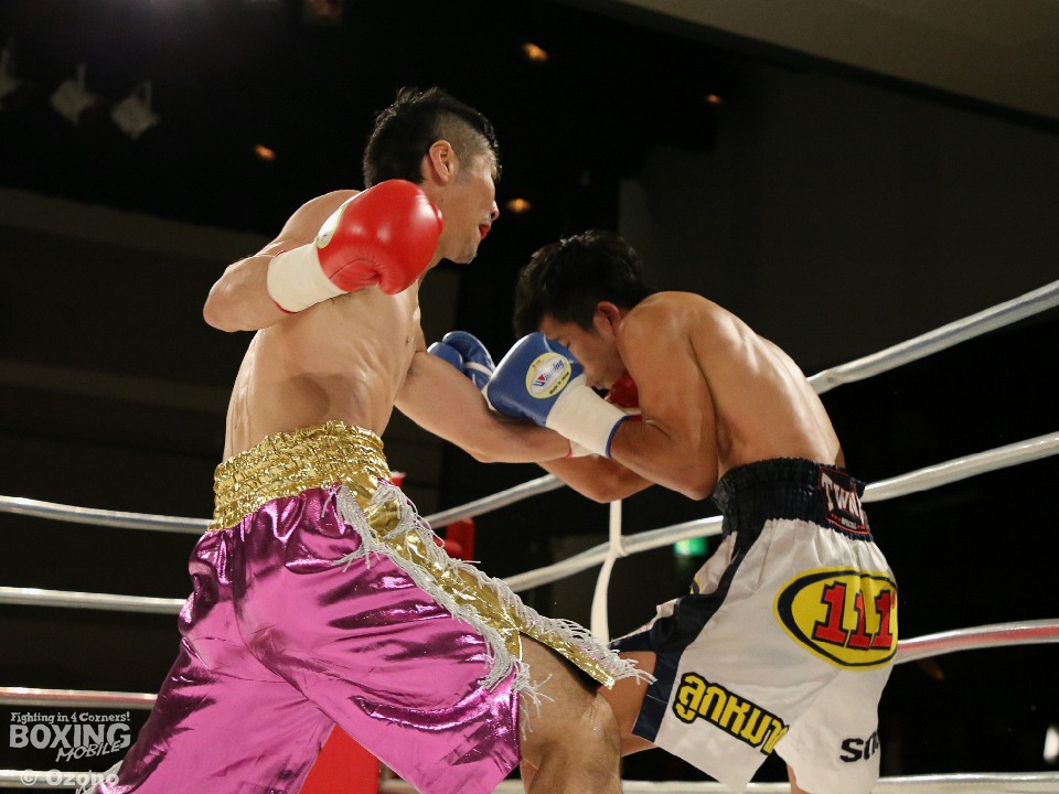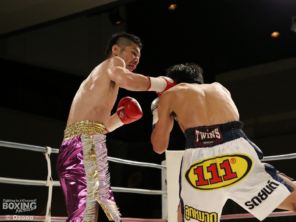 試合:ロングレンジから左ボディを狙う此村に対し、ナティートーンは相手の打ち終わりに右を狙いスタート。2回に入ると此村は低い姿勢から連打するが、すぐに距離が詰まり攻撃は続かなかった。すると、4回にナティートーンがホールディングで減点。此村は勢いを取り戻すとナティートーンをロープに追い込み、左フックで倒した。しぶとく立ち上がったナティートーンだが、連打を防ぎきれずレフェリーストップとなった。