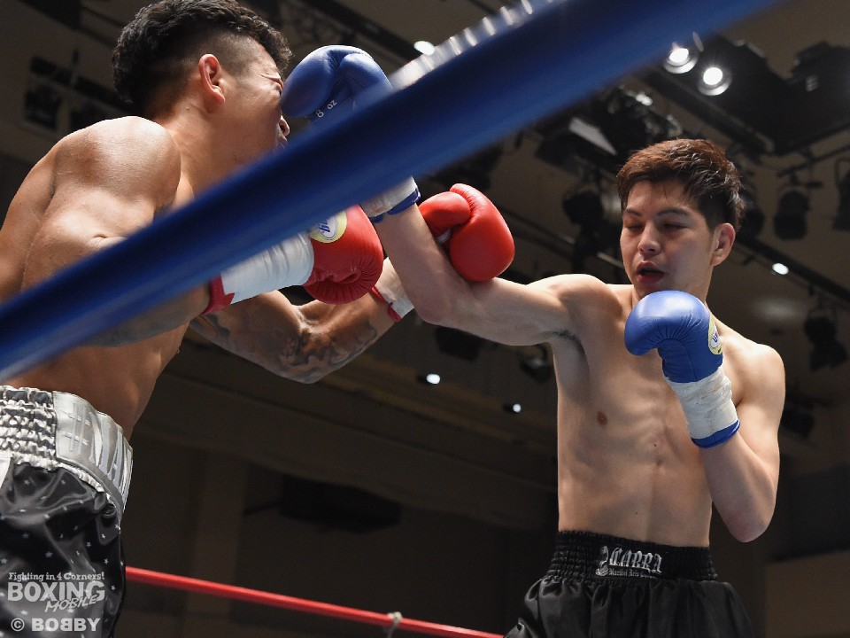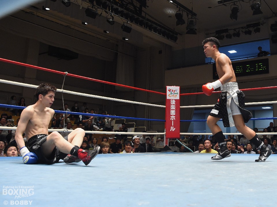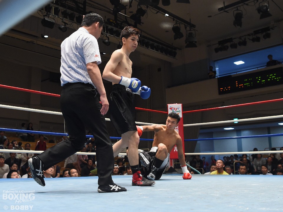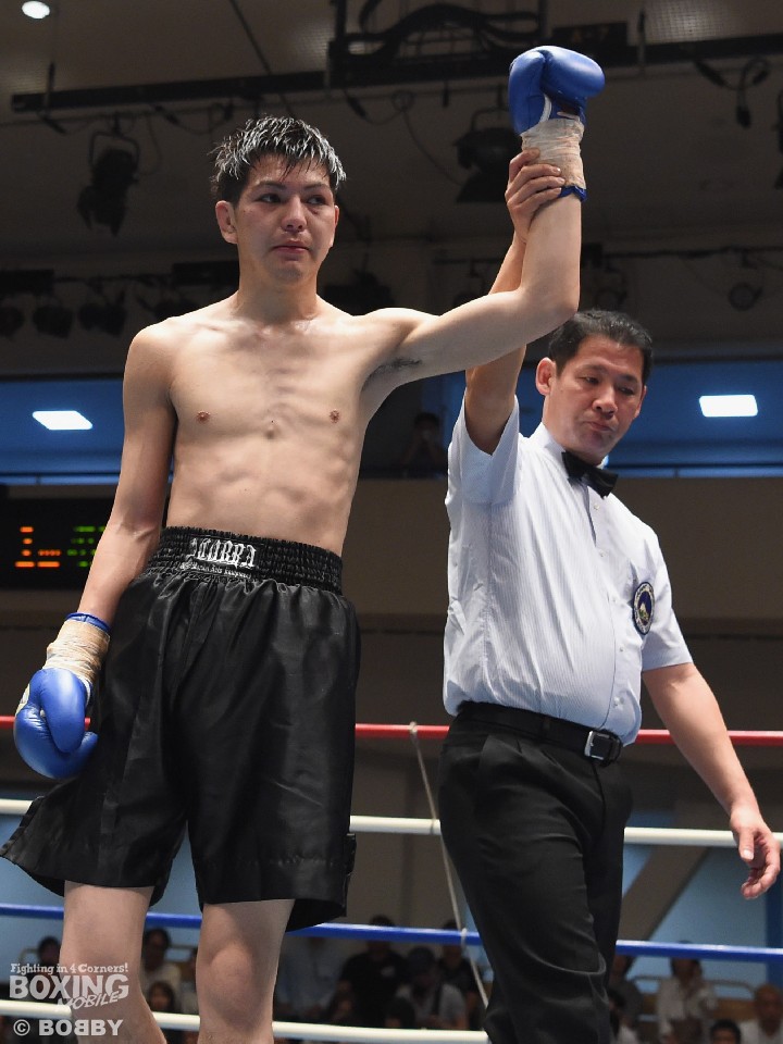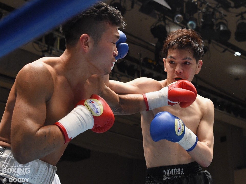 試合:ジャブの刺し合いからサウスポーの佐々木が開始50秒に左ストレートでダウンを奪う。再開後は鈴木もしっかりと間合いを測り、ジャブを散らしては右まで繋げるが、打ち終わりを狙われてしまい、被弾すると体勢を崩した。2回に入り佐々木はさらにペースを上げるが、前に出たところで足を滑らせ、そこに右を合わされ不運なダウン。倒し返した鈴木のリズムは俄然良くなり、ジャブで距離をキープしては右を上下に打ち込んだが、判定は最後まで追い続けた佐々木に軍配が挙がった。