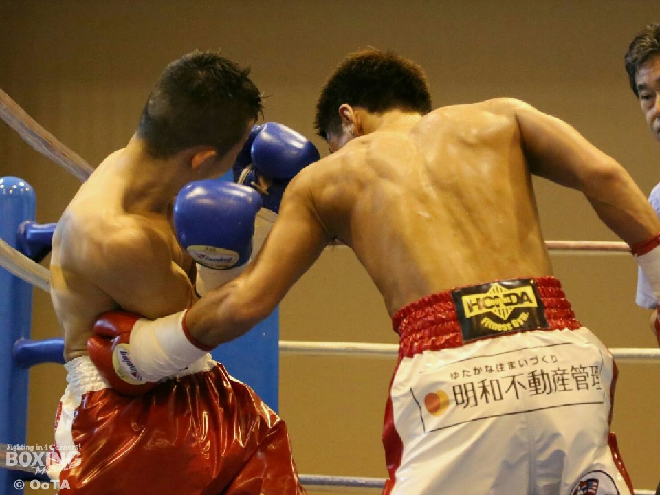 試合:2戦続けての世界戦敗北から再起戦となった福原が、初回から左ボディストレートで飛び込むとそこから一気にプレッシャーをかけてペースを奪う。前進を続ける福原にランキングを奪うために敵地に乗り込んだ高橋も右をヒットさせるが、プレッシャーを断ちきるダメージは与えられなかった。3回に入ると更にプレスを強めた福原が右のボディを効果的に見せながらポイントを奪取するが、懸命なガードから右クロス、左フックで打ち終わりを狙い始めた高橋も反撃の狼煙を上げる。5回に入っても初回と変わらないプレッシャーをかけた福原が左右のボディを効かせロープに詰めて山場を作るもゴング。高橋は6回に打ち終わりを狙ったショートカウンターで福原の動きを止めるシーンを作ったが、福原もペースを落とさなかった。最終回、福原がローブローで減点1を取られるもペースは変わらず、高橋も打ち合いに応じ互いにKOを狙ったパンチが交錯する中ゴングが鳴った。カウンターを受けながらも、終始プレッシャーをかけ続けた福原が最終回の減点をものともせず判定で勝利した。