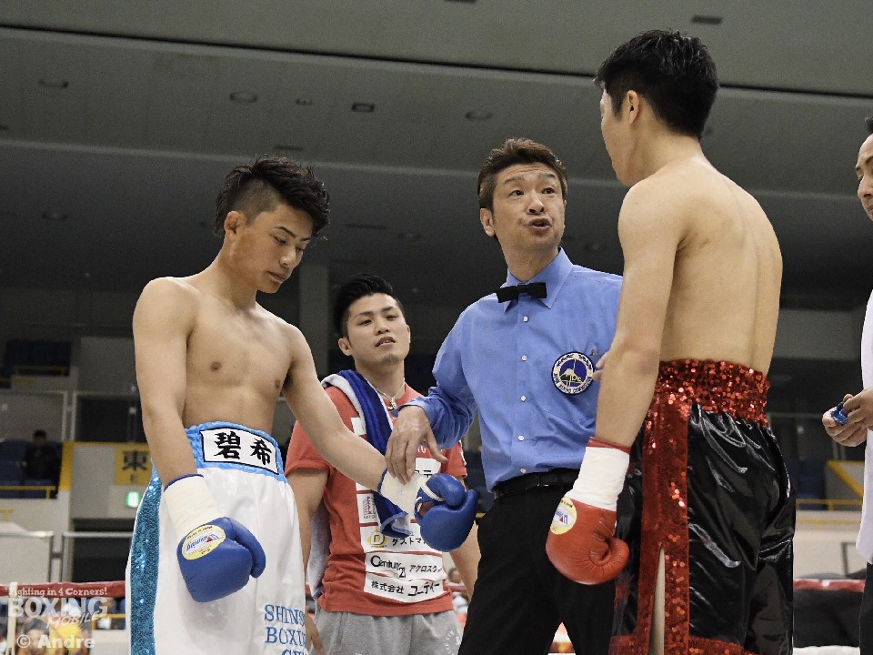 試合:ジャブの差し合いで試合はスタート。デビュー戦の吉川が相手の打ち終わりにワンツーを当てていくのに対し、鮫島はプレスをかけるが単発になる。中盤、的確にヒットを重ねたのは吉川。終始、有効打を集めデビュー戦を判定勝利で飾った。