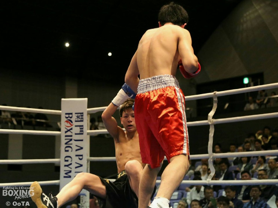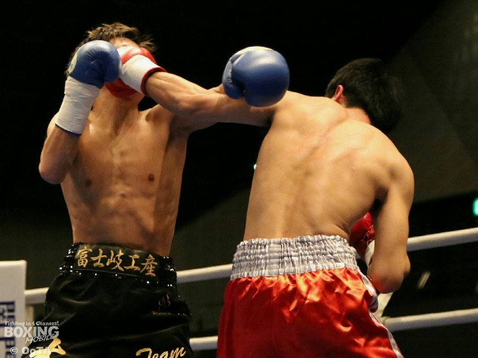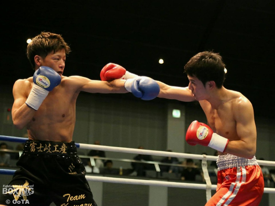 結果:初回、左右をアグレッシブに振って攻める古賀に対し、打ち終わりに左フックを合わせた冨永がダウンを奪う。2回に入るとコンパクトに手数を出し始めた古賀がポイントの挽回をはかる。いきなりの右と打ち終わりを狙う冨永も引かずKOのチャンスを互いに作るものの決着は判定ともつれた。序盤のダウンポイントを守り抜いた冨永が判定で勝利。