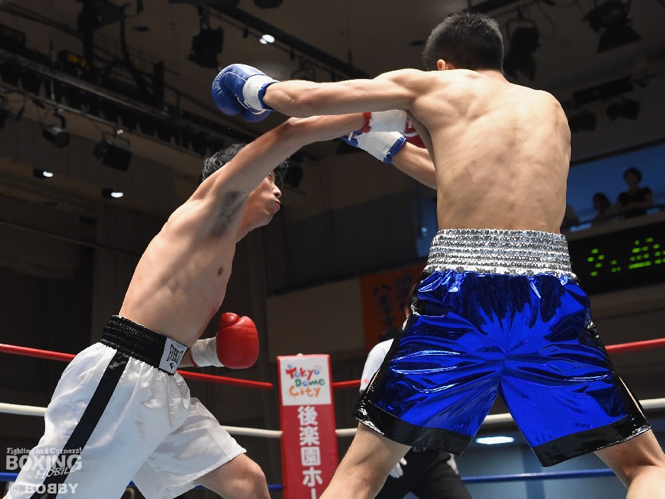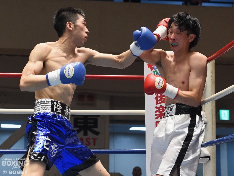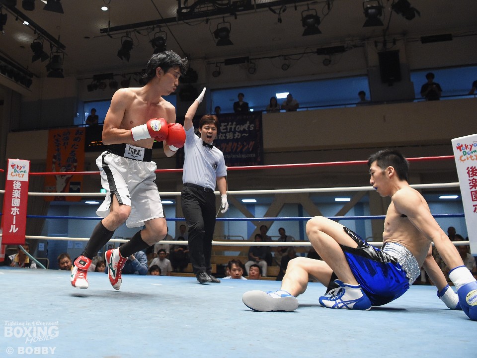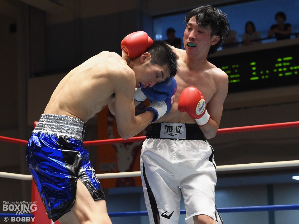 試合:4戦目の後藤が細かくジャブを突きフェイントをかけ、30秒過ぎに右ストレートでダウンを先制した。立ち上がりの硬さをつかれたデビュー戦の柳堀だが、再開後はワンツーでプレス。詰めては上下の打ち分けで攻勢に転じ、この回終盤には右ストレートで後藤をグラつかせた。2回、後藤は再びジャブで組み立て直すが、攻守の切り替えで柳堀に上回られピンチ。しかし、ここからサイドに逃れるとジャブを効かせ、体勢を崩した柳堀にジャブから返しの右ストレートでフィニッシュ。柳堀は立ち上がることができず、カウント中にレフェリーが試合を止めた。