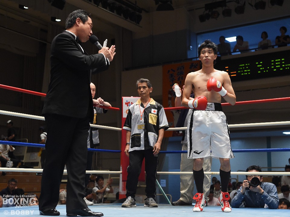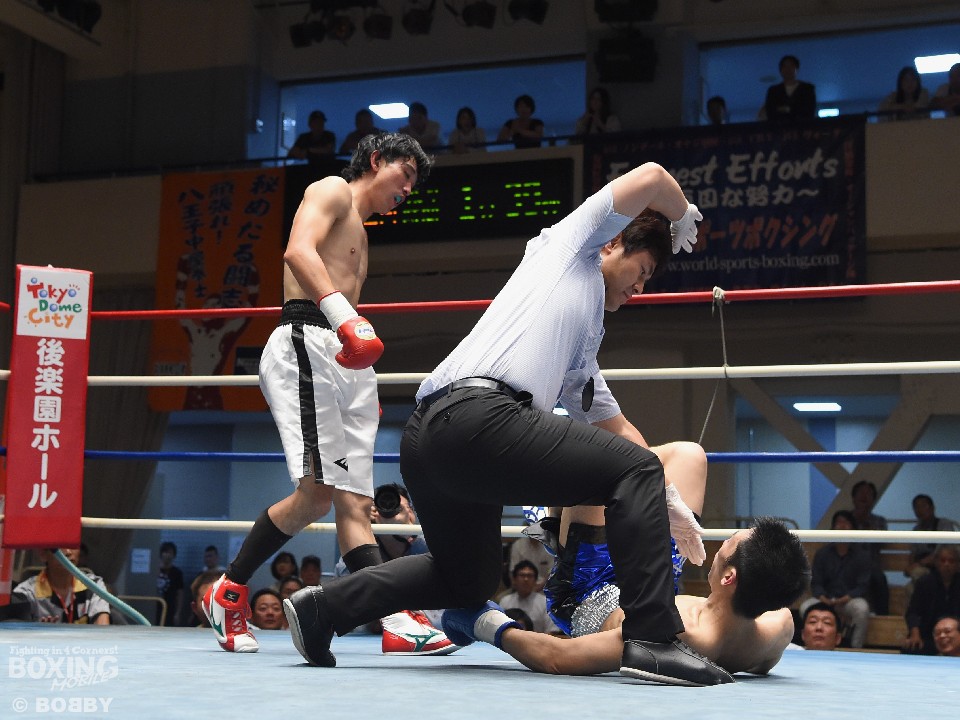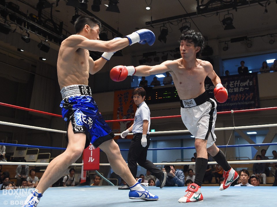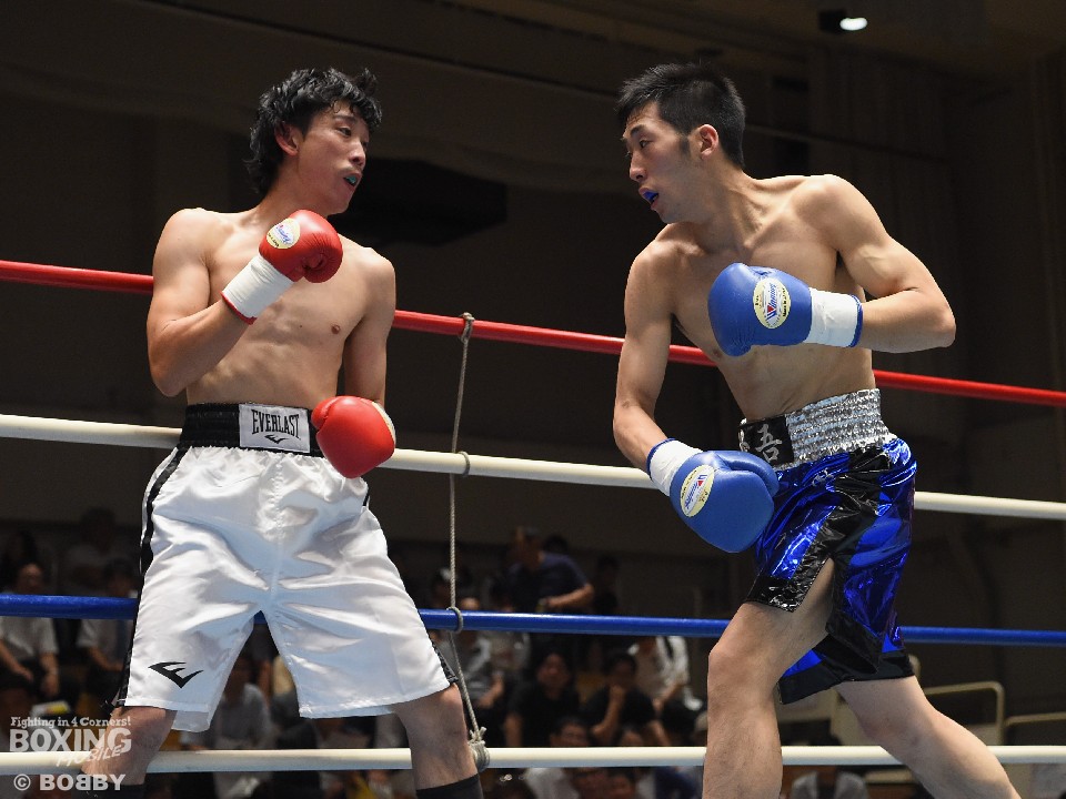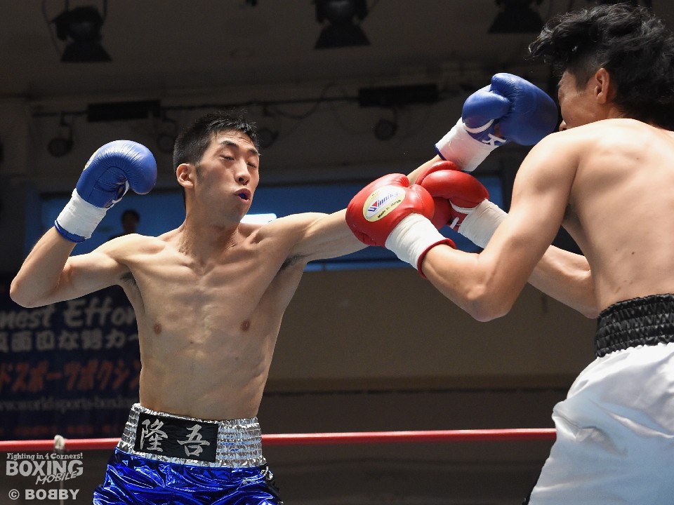 試合:4戦目の後藤が細かくジャブを突きフェイントをかけ、30秒過ぎに右ストレートでダウンを先制した。立ち上がりの硬さをつかれたデビュー戦の柳堀だが、再開後はワンツーでプレス。詰めては上下の打ち分けで攻勢に転じ、この回終盤には右ストレートで後藤をグラつかせた。2回、後藤は再びジャブで組み立て直すが、攻守の切り替えで柳堀に上回られピンチ。しかし、ここからサイドに逃れるとジャブを効かせ、体勢を崩した柳堀にジャブから返しの右ストレートでフィニッシュ。柳堀は立ち上がることができず、カウント中にレフェリーが試合を止めた。
