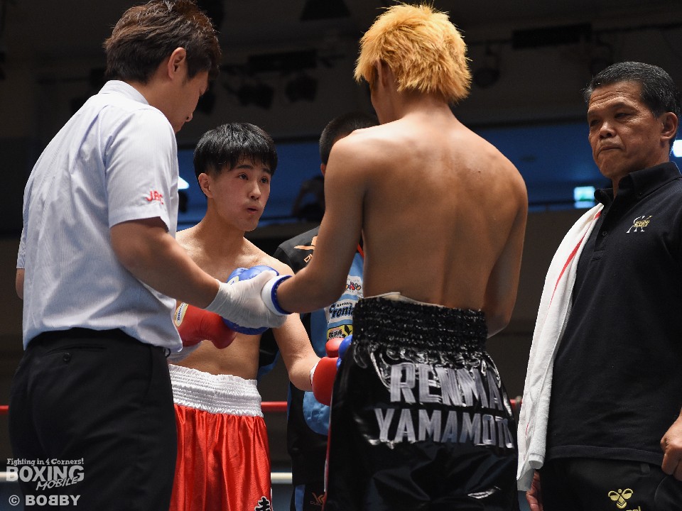 試合:初回、伊佐が右を伸ばすのに対し、サウスポー山本は左ストレートを合わせると右フックを好打。2回、伊佐は巧みな試合運びで主導権を握ると右ストレートで顔を弾いた。4回、山本は左ストレートをボディに伸ばし果敢に攻め立てたが伊佐のペースは崩れなかった。ジャッジは割れたが伊佐に軍配が上がった。