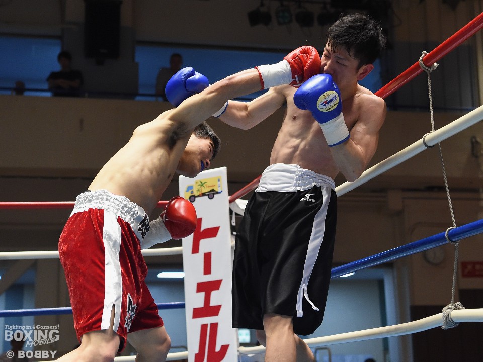 試合:デビュー同士の一戦。ゴングと同時に平井が駆け足で距離を縮めると、意表を突かれた初鹿は後退。下がりながらジャブ、ワンツーで抵抗するが、リズムが掴めず苦しい立ち上がりとなった。2回に入っても平井の勢いは衰えず、くっついてはボディを軸に連打。初鹿もしっかりとガードを固め、距離を取っては左右を返すが、離れるのか押し返すのかはっきりないまま平井に付き合ってしまい、この回終了間際には右を効かされた。後半に入ってもこの展開は変わらなかったが、最終4回は初鹿が右アッパー、左フックを決め一矢報いた。