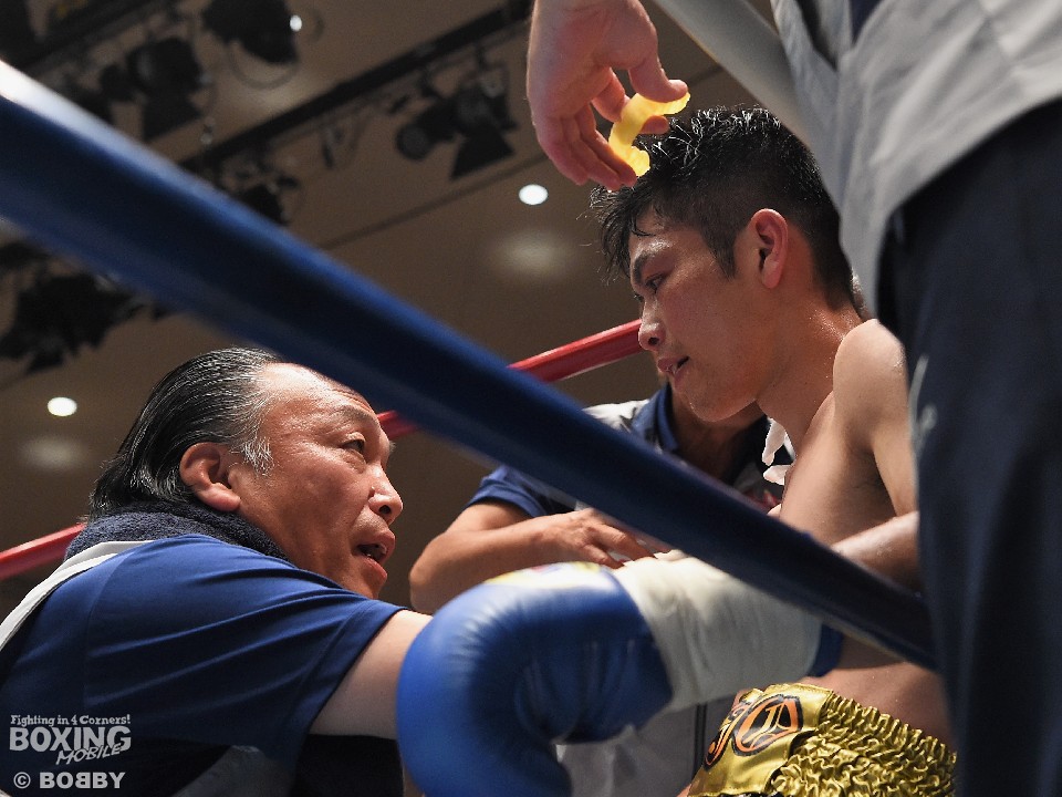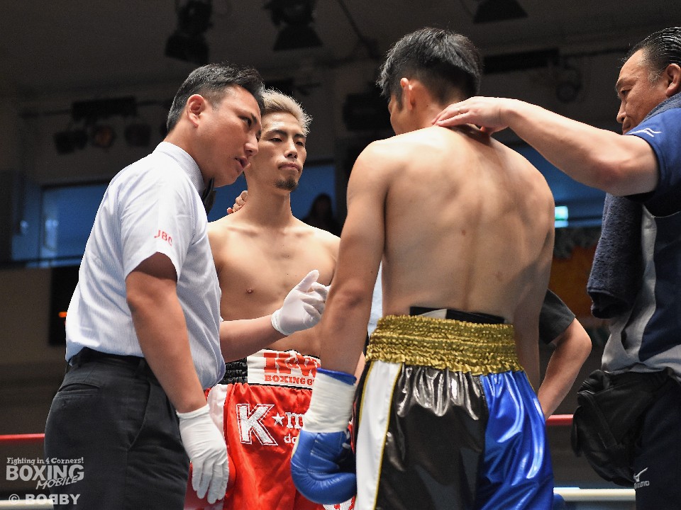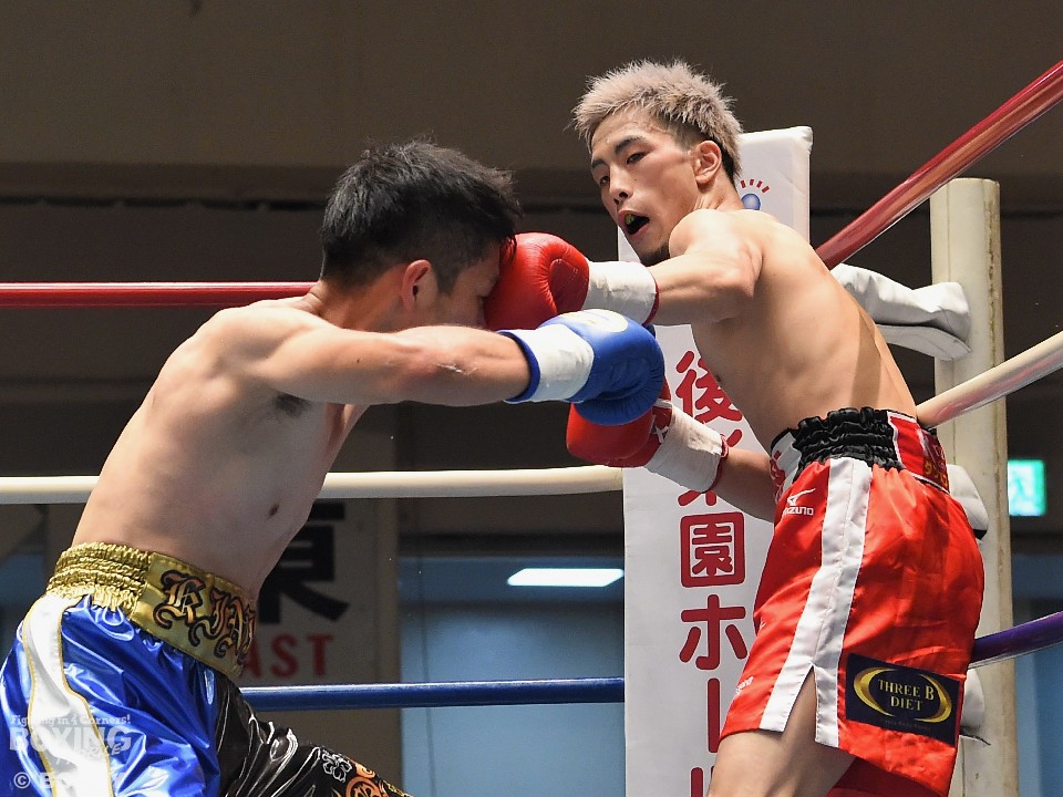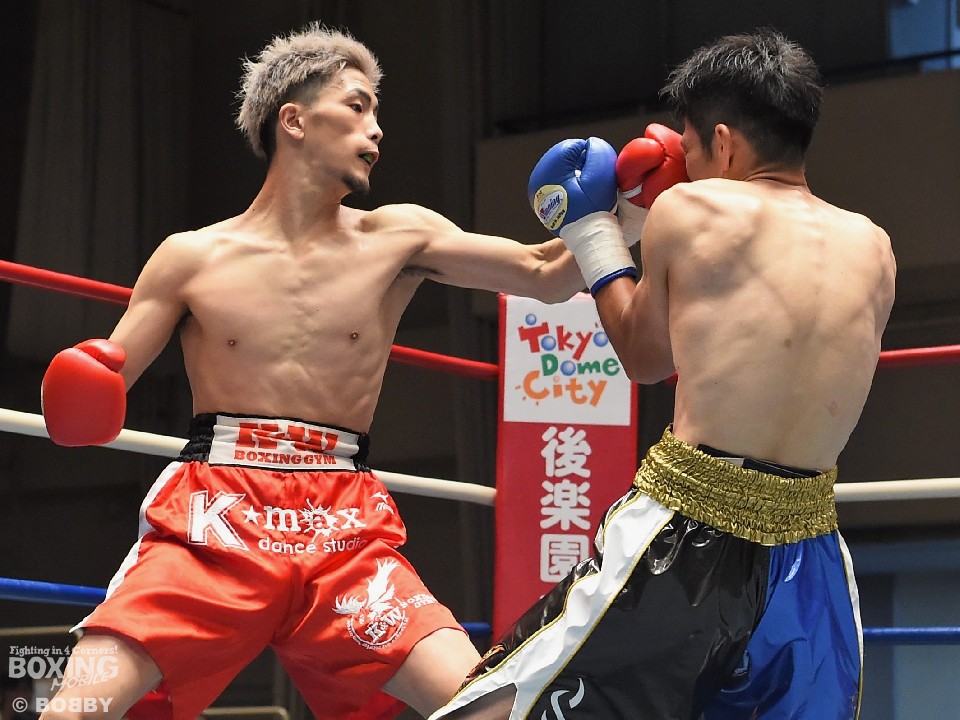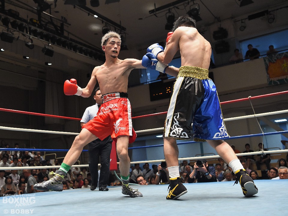 試合:距離を詰める金城に対し、尾崎はフットワークを使い、スウェーでかわして右を叩きつけた。2回、スピードで翻弄しはじめた尾崎は、ジャブからワンツーで攻勢を仕掛けると続く回は、ポジションを変えながら相手に的を絞らせずペースを維持した。4回、金城はしつこく前進して右から攻めたが、尾崎を捕まえることはできなかった。4勝を挙げた尾崎がB級昇格を決めた。