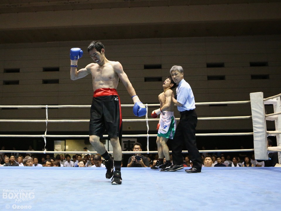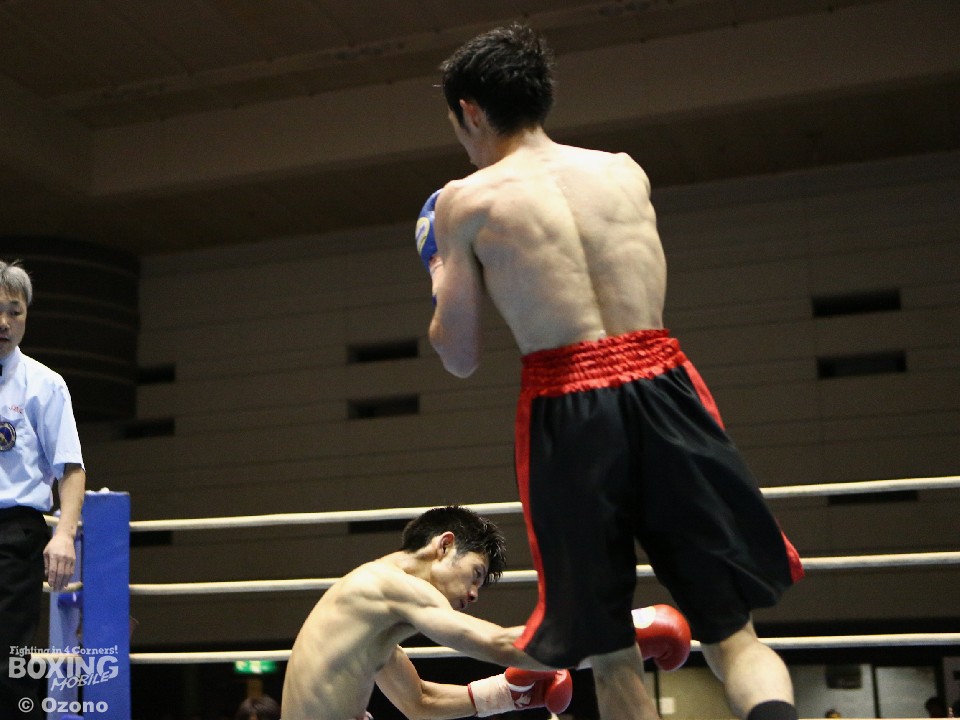 試合:デビュー戦の加藤がガードを固め前に出るとワンツーから左フックを振るう。対して、山根は加藤の打ち終わりに右ストレートを好打した。すると3ラウンド中盤、山根の右が決まり加藤がダウン。立ち上がるも膝が揺れレフェリーが試合を止めた。