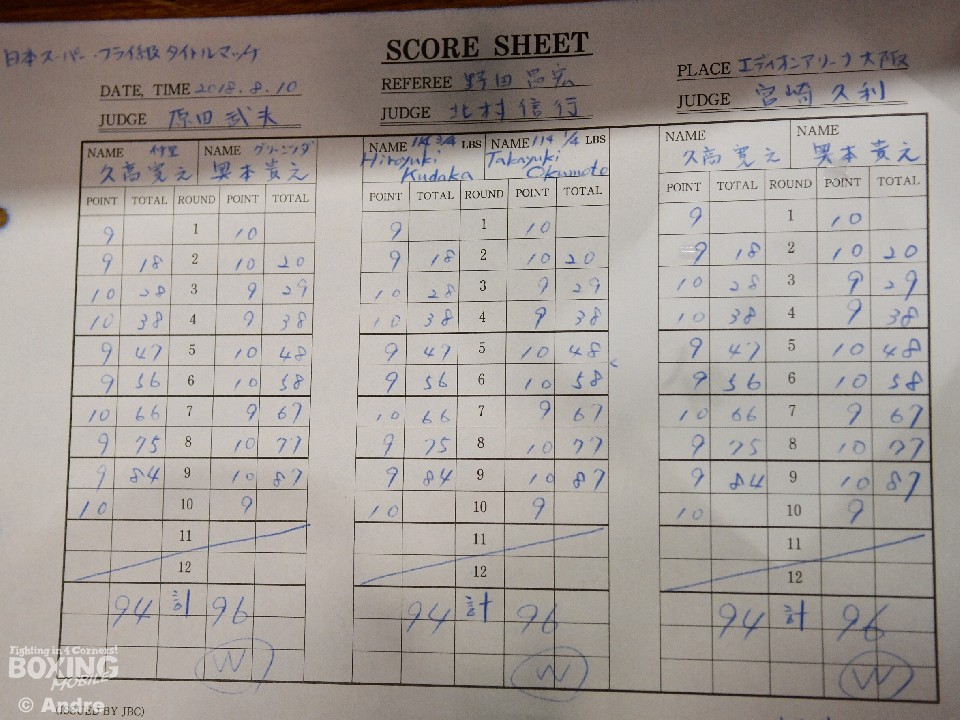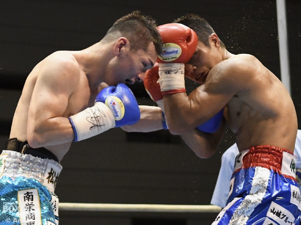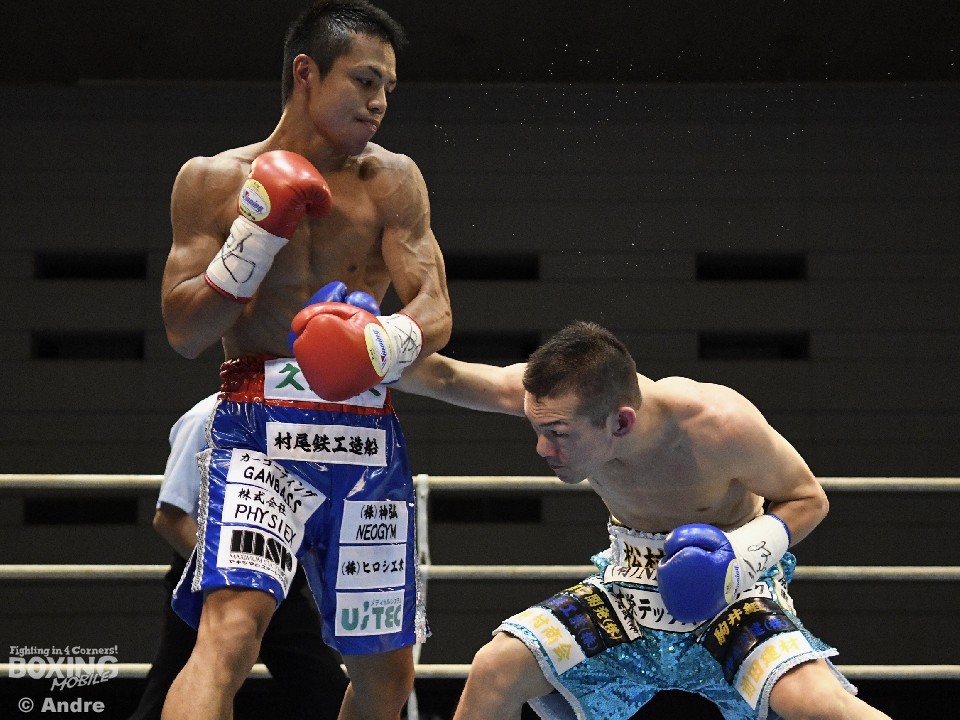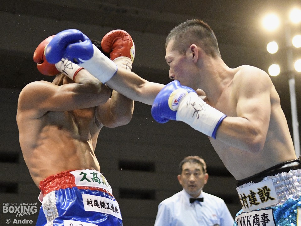 試合: 初防衛戦を迎えた久高は、元同門の後輩、奥本を迎えた。開始はサウスポーの奥本が足を使いジャブを先制することに成功した。対して、久高は接近して左右のボディを決め対抗した。3ラウンド、両者偶然のバッティングで久高が右目上をカット。前半はクリンチの多い展開で試合は進んだ。5ラウンド終了時点での途中採点は48-47で3者が挑戦者の奥本を支持。すると6ラウンド、プレスを強める久高は接近して左右のボディを強振した。奥本は、下がりながらも左ストレートを上下に散らし応戦。執拗にボディを狙う久高にカウンターの右を決める奥本が優勢に試合を進めた。打ち合うの続く両者に会場は両陣営の応援でヒートアップした。9ラウンド、久高の右目上の傷がひどく2度のドクターチェックが入る。最終ラウンド、両者リング中央で死力を尽くした打ち合いを演じるも決定打は生まれず。判定で奥本が勝利を収め新チャンピオンに輝いた。