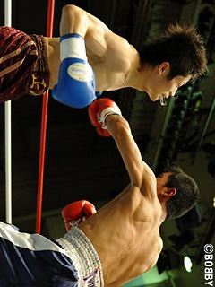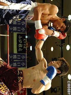 試合:リズムのいい瀬川の攻撃をウィービングでかわしながら右フックをヒットさせるインタノン。大振りを見せられてから少し出入りが弱くなった瀬川だが、ブロックからショート連打で試合を組み立てていく。スイッチしながらうまく懐に入ってくるインタノンをノーモーションの左でのけぞらせ、コンパクトに上下打ち分ける。4R 、間合いを外すのがうまいインタノンの離れ際を追いながら右を放ち、インタノンがスリップ気味のダウン。6R、序盤いい動きをしていたインタノンの手数がすっかり減ったところで、瀬川は速い攻撃でコーナーに追い詰め、すかさずボディ連打。こらえきれずインタノンがダウンしたところでレフェリーストップ。