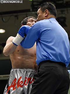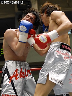 試合:立ち上がりから小野沢がジャブを的確にヒットさせ主導権を掴む。佐藤は足を使い動くも、小野沢がジャブからストレートをヒットさせ、確実にポイントを奪って行く。3~4Rには小野沢が左ボディ・左フック・ストレートをヒットさせ佐藤を追い込むが、佐藤も単発ながら左フック・ストレートを返す。6R、小野沢がジャブからワンツーをヒットさせ、佐藤を下がらせると小野沢が一気にワンツーフックを打込む。このクリーンヒットで、レフェリーは佐藤のダメージが深いと判断し試合を止めた。