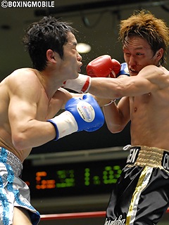 試合:立ち上がり、久し振りのリングの感触を確かめる様に菊井がジャブを石本にヒットさせ主導権を掴む。石本もジャブからワンツーを返すが、菊井のジャブに出足を止められてしまう。中盤、菊井がジャブからワンツーをヒット。石本もワンツーを打ち返すが、菊井がクリーンヒットで上回る。7R、菊井がストレートから左フックをヒットさせれば、石本もストレートを返し打撃戦となるも手数は互角。最終8R、石本の右ストレートがカウンター気味にヒットすると膝が落ちる菊井。ここで猛然とラッシュを仕掛け襲い掛かるが、菊井は足を使い何とか凌ごうとする。石本はダウンを意識しすぎ、左フック・ストレートが大降りになり、菊井にディフェンスされてしまい試合は判定に。菊井が序盤のリードを逃げ切り、判定2-1で復帰戦を勝利で飾った。