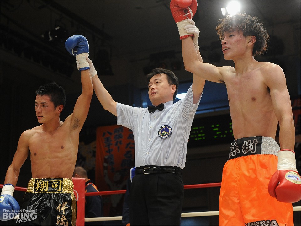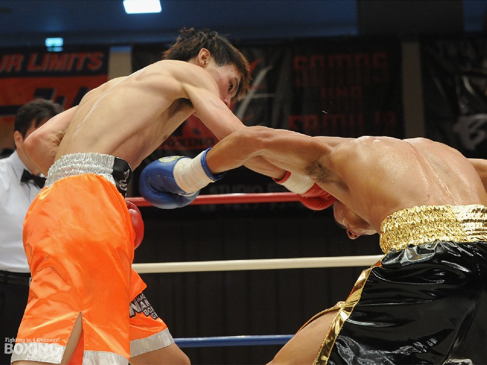 試合:長身の臼井が左を突いて距離を測るのに対し、松本は頭を振りながら飛び込んで右ストレートをヒットした。2回、臼井のジャブが邪魔で懐に入れない松本だが、右ストレートで膝を揺らした。3回、臼井は真っ向から打ち合うと左ボディ、打ち下ろしの右ストレートを決めた。4回、松本は執拗に距離を詰めて連打で迫ったが臼井もワンツーを好打し譲らなかった。採点はジャッジ2者が引き分けとして決着がつかなかった。