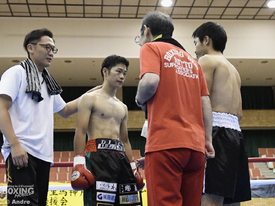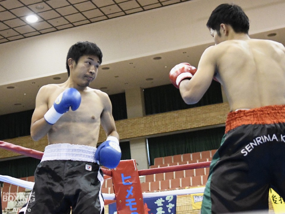 試合:仙石はジリジリとプレスをかけ右ストレートを伸ばす。対して、小川は左ジャブをボディに当てると右のノーモーションを伸ばす。中盤、ワンツーを出して前進を開始した小川に仙石は右カウンターを狙う。4ラウンド、小川は大きな右を当て、仙谷はコンビネーションを決めるが、両者決定打は奪えず。判定で仙谷が勝利した。