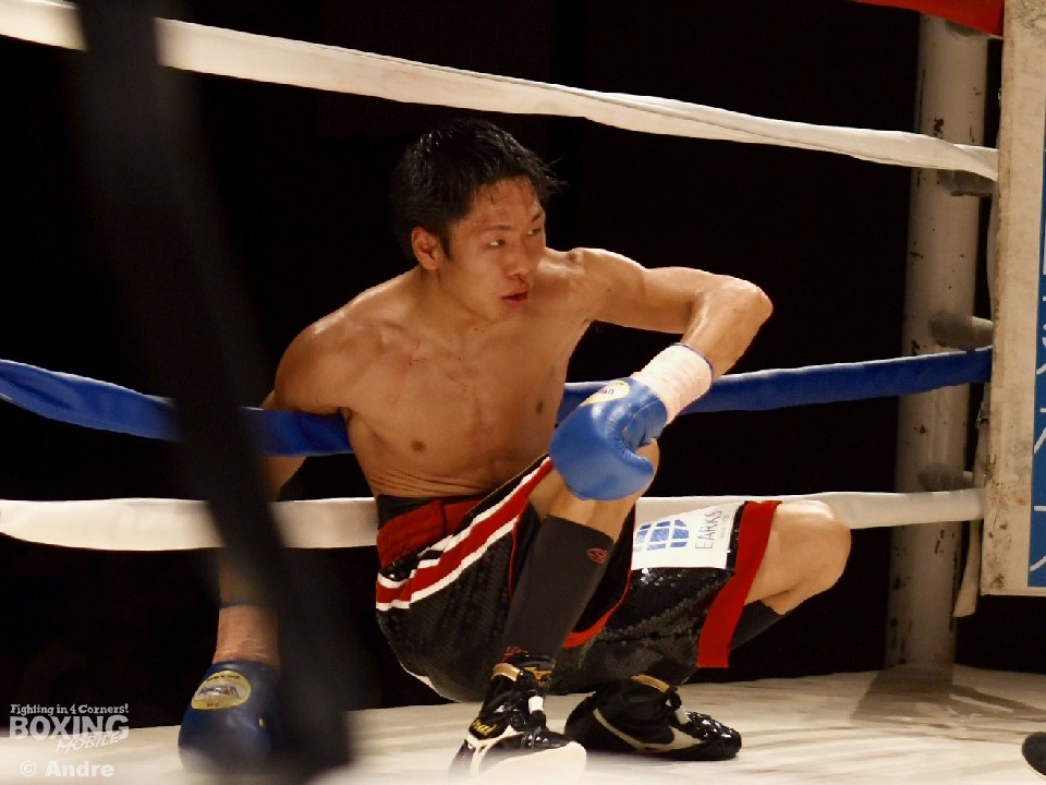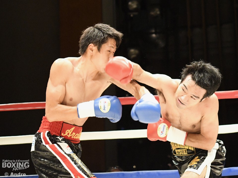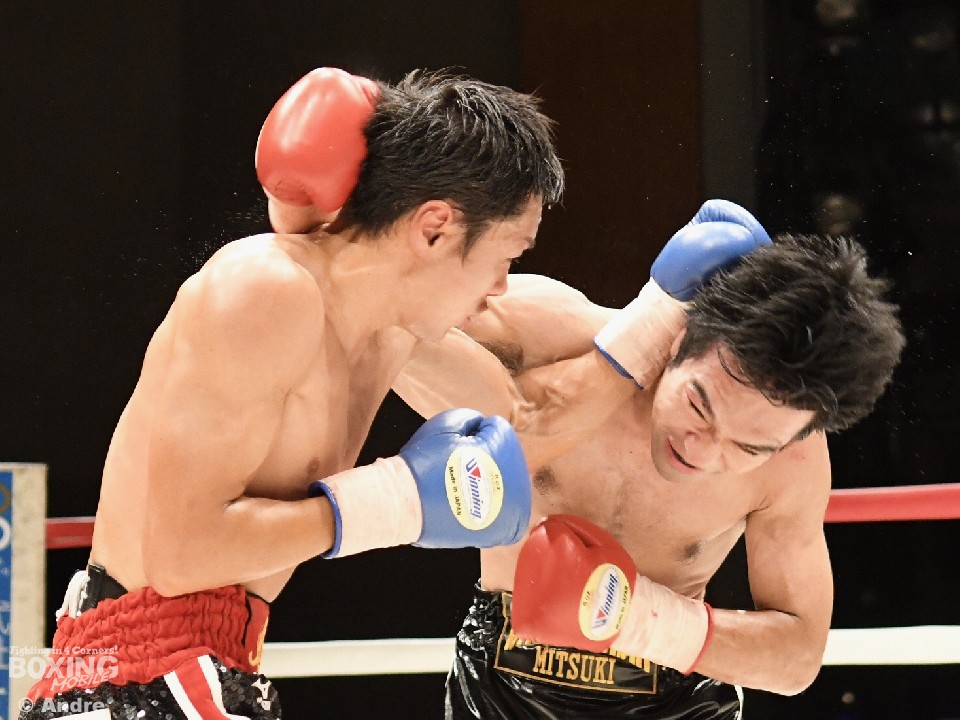 試合: サウスポーの松岡はスピードのあるジャブでリズムを作る。対して、長田はフェイントを多用すると前に出てワンツーから左右のボディを当てる。2ラウンド、松岡のヒットで長田の左目上がカットした。3ラウンド、今度は両者偶然のバッティングで長田が右目瞼をカット。4ラウンド、長田の右が決まり松岡がダウン。ダメージの残る松岡にラッシュを仕掛けた長田が2度のダウンを積み重ね、最後は10カウントを聞かせた。